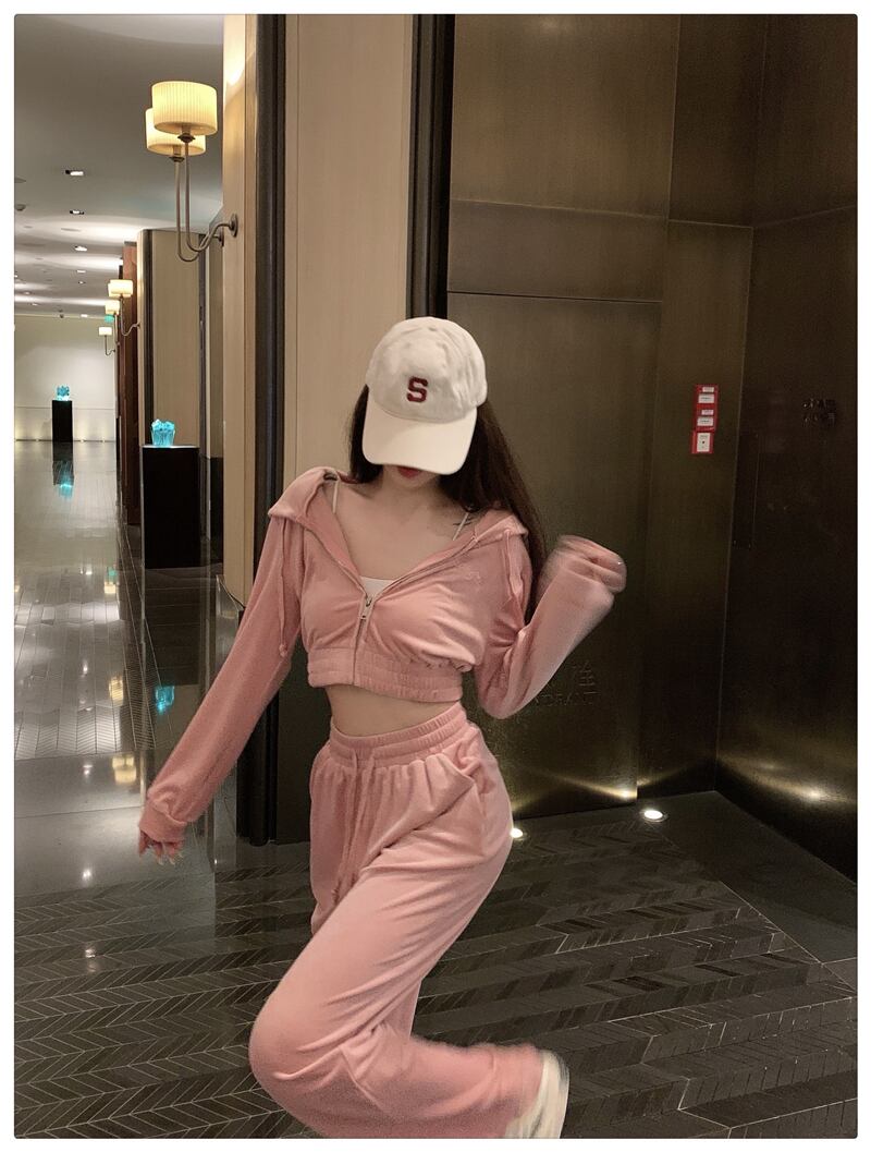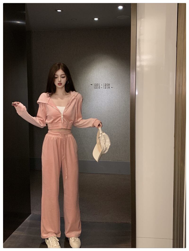 ベルベットカーディガンジャケット ハイウェストウェストオータムパンツ カジュアルレディース 秋物 Xiaofeijia71222182344
