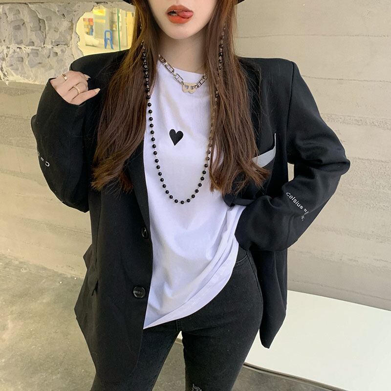 ホワイトTシャツ シャツ ロングルーズラウンドネックブラウス レッド 長袖 刺繍 Oネック Xiaofeijia90718395704