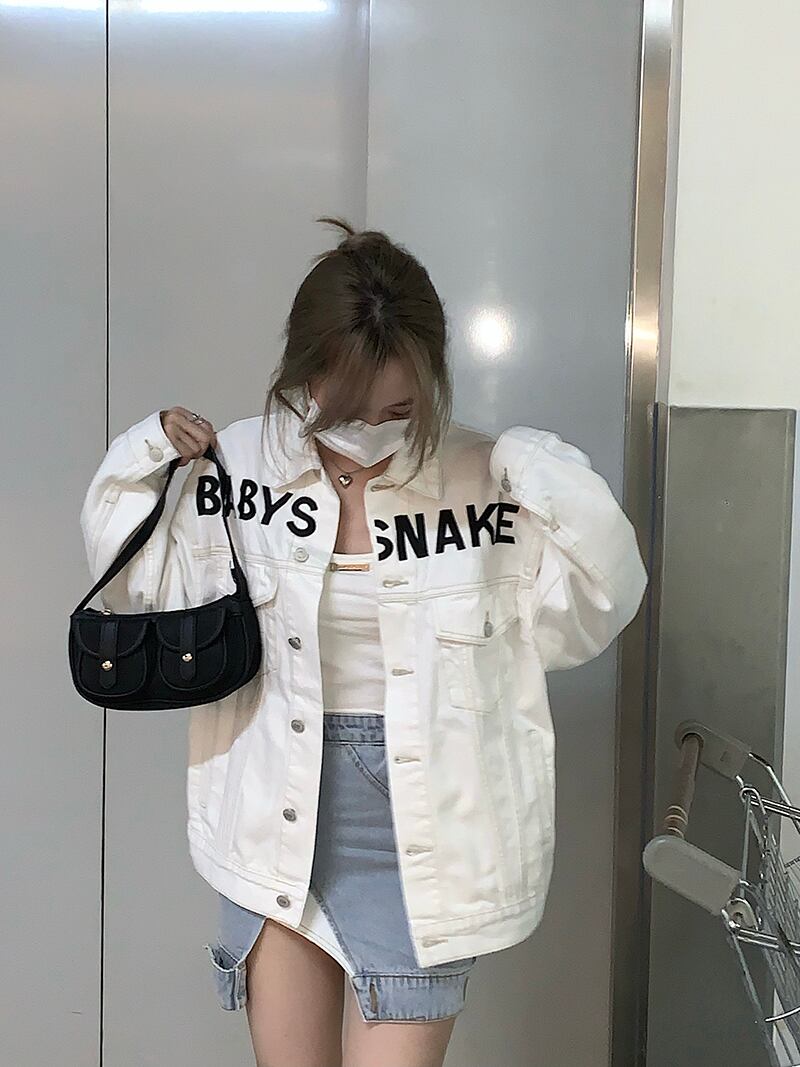 ホワイトジャケット スタイルルーズプリントオータム ロング 秋物 Xiaofeijia76727361864