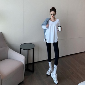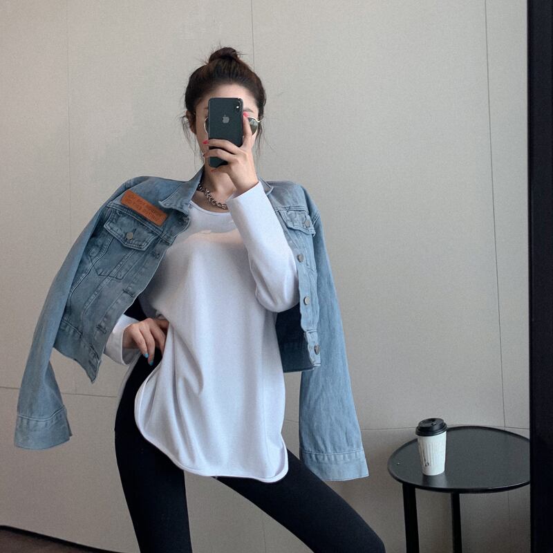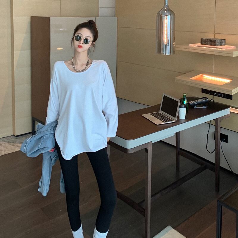 オータムホワイトTシャツ シャツ ルーズサイドスリット長袖スリーブ ロング 秋物 Xiaofeijia12939440594