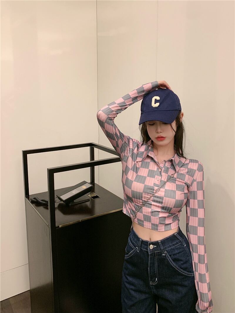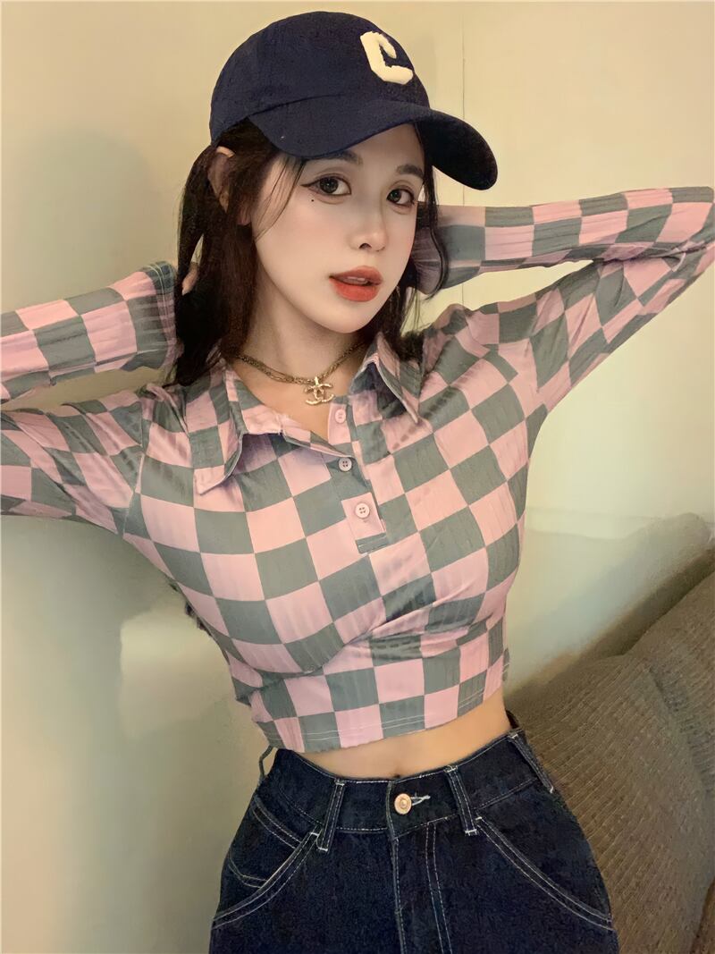 カラー長袖スリーブTシャツ ロング Xiaofeijia23204108257