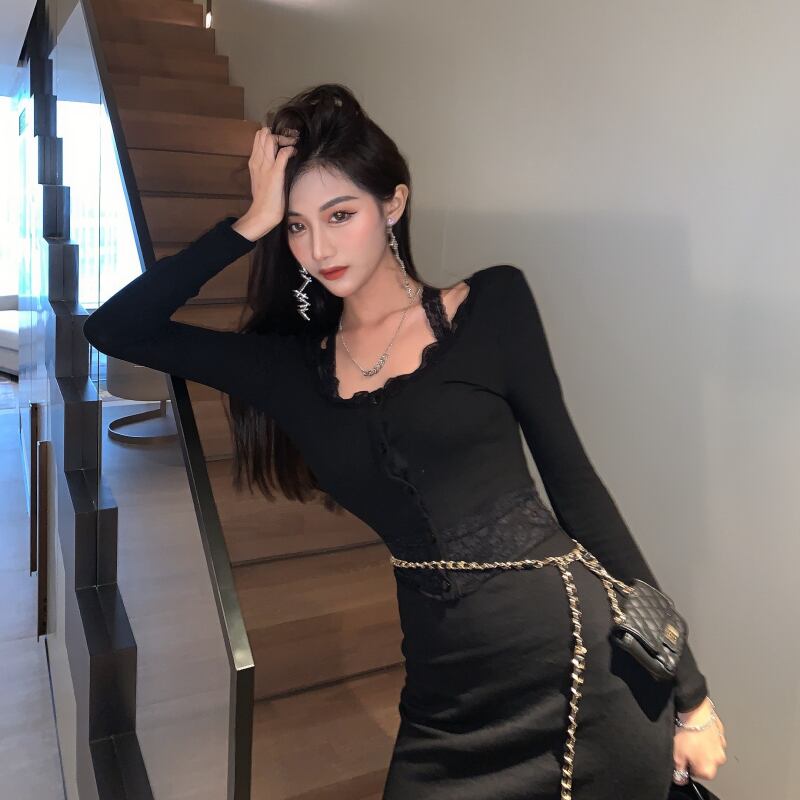 オータムレーススカート ジャケット ロング 秋物 ステッチ Xiaofeijia43398597461