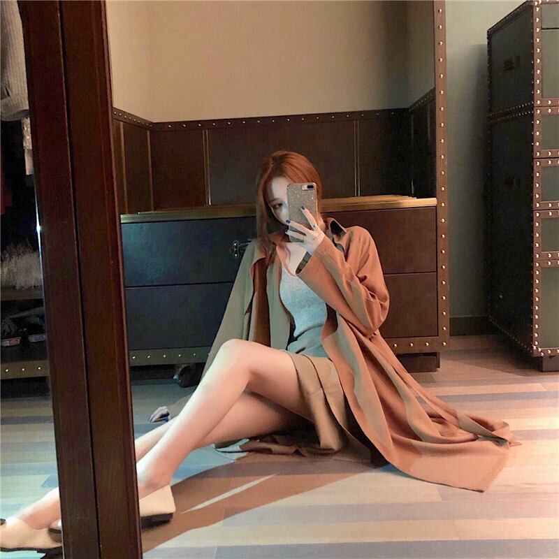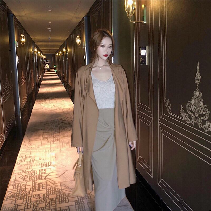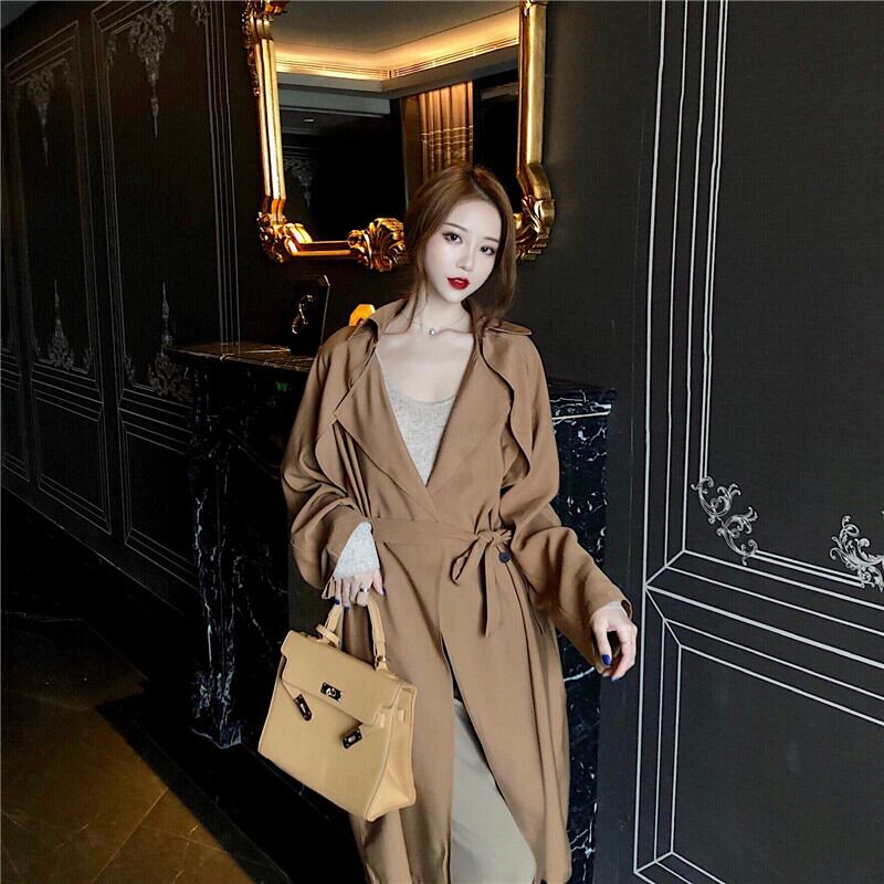スタンダードカラージャケット スプリングオータムルーズカジュアルウェストスタイルコート ロング レトロ 春物 秋物 Xiaofeijia99592976212
