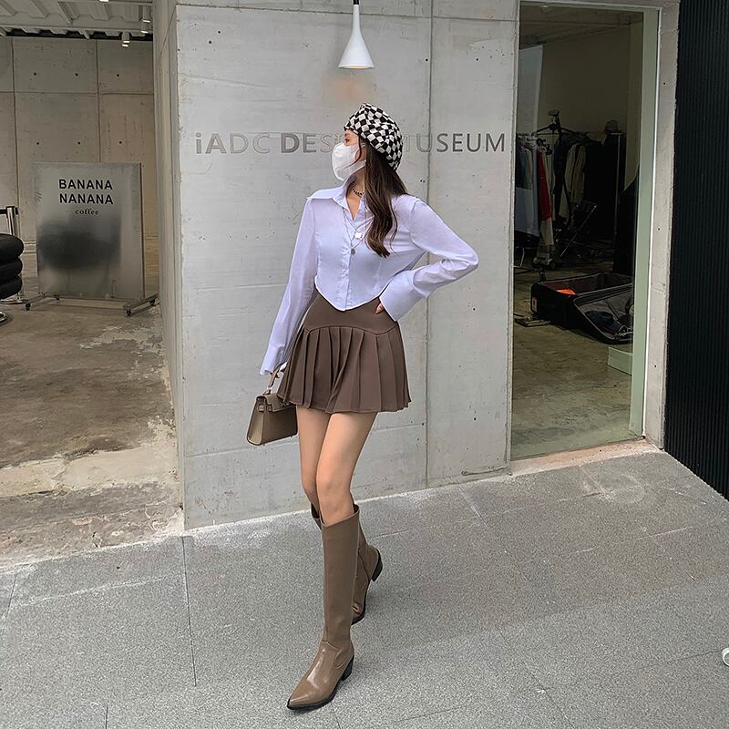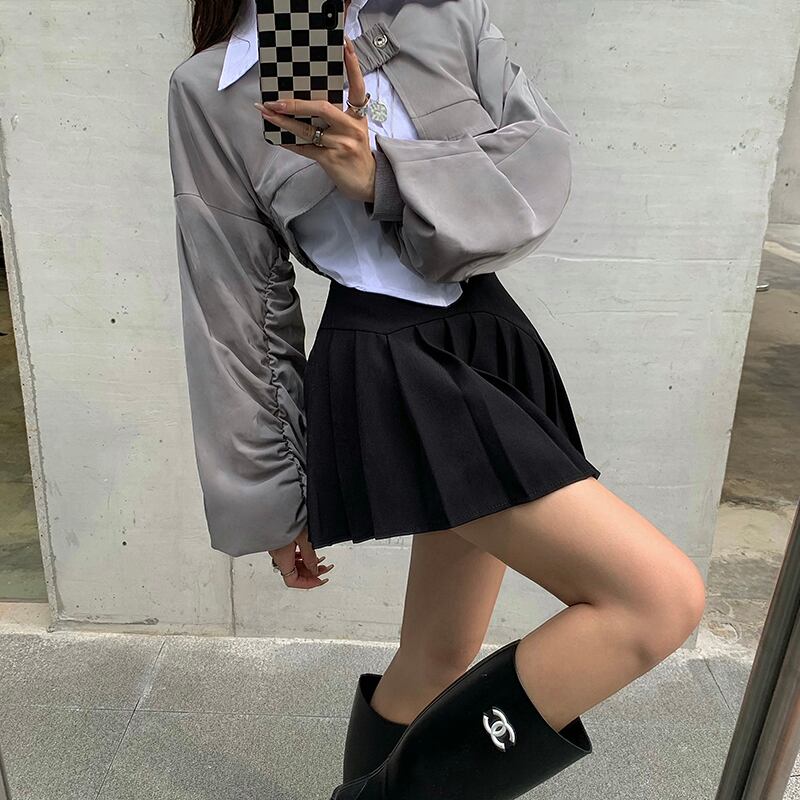 プリーツスカート スプリングオータムハイウェストウェストショートスタイル薄手Aライン 春物 秋物 Xiaofeijia15431952432