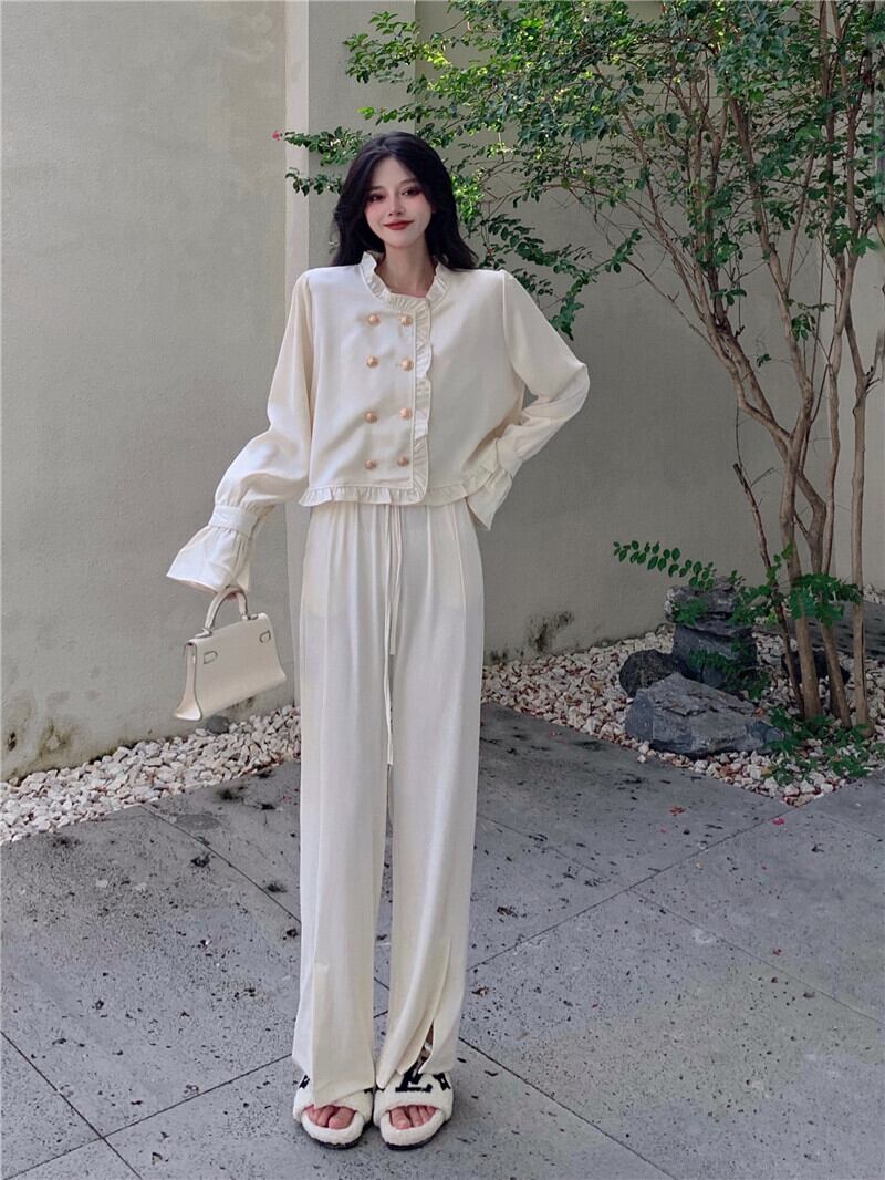スタンダードスタイルスリーブシャツ オータムブラウス ダブルブレストショートジャケット レトロ レース 秋物 Xiaofeijia57273573597