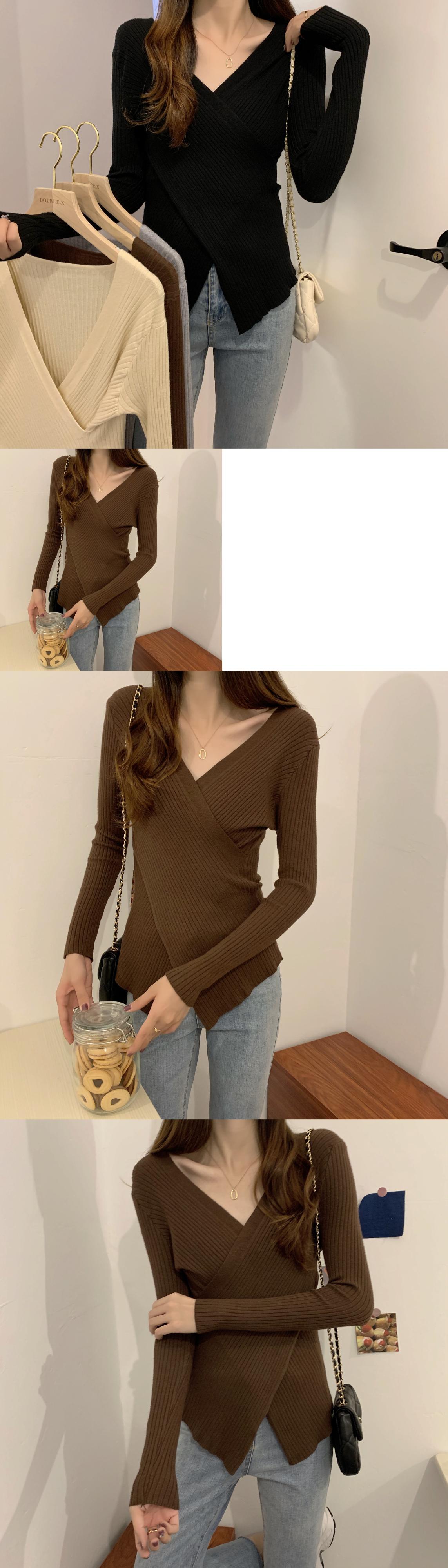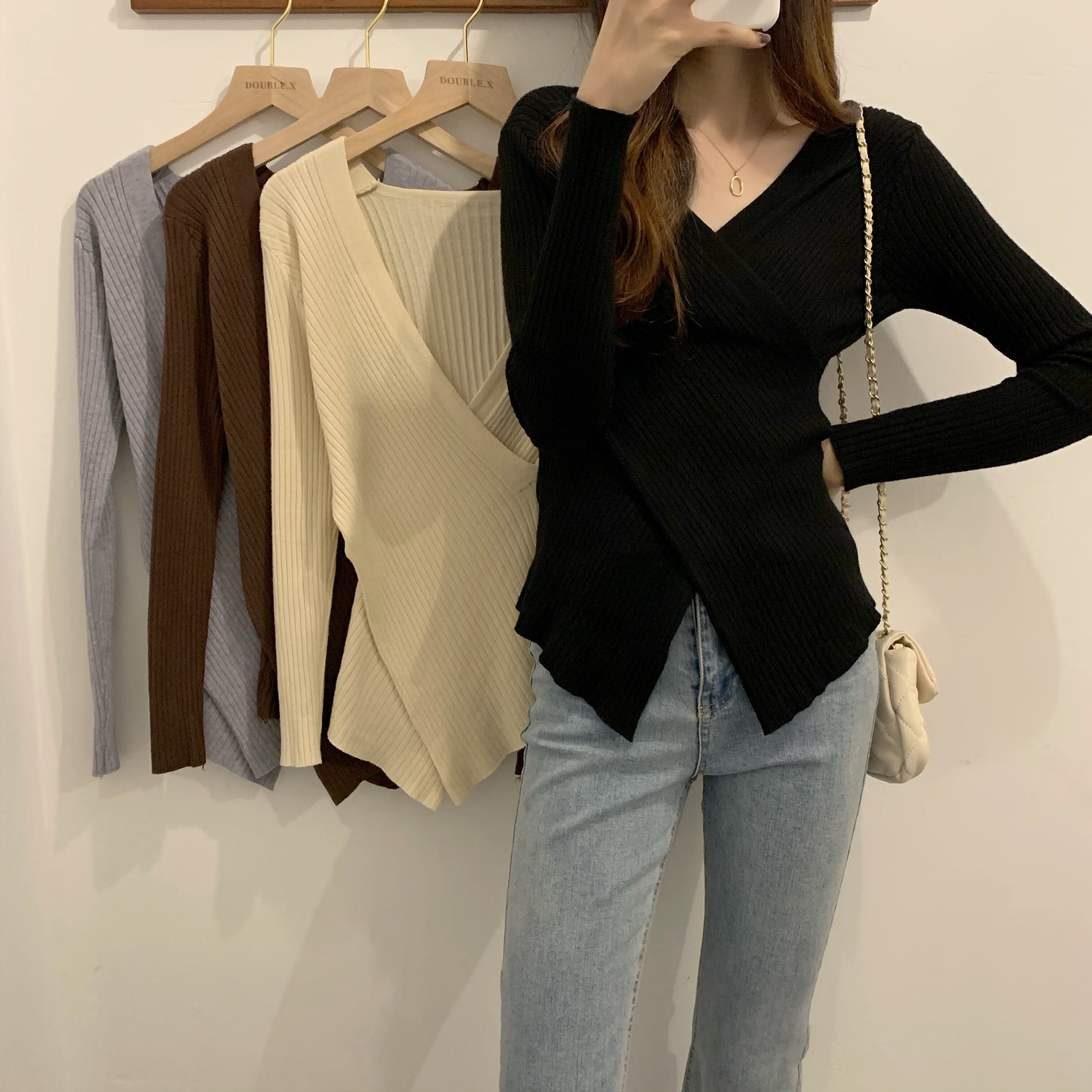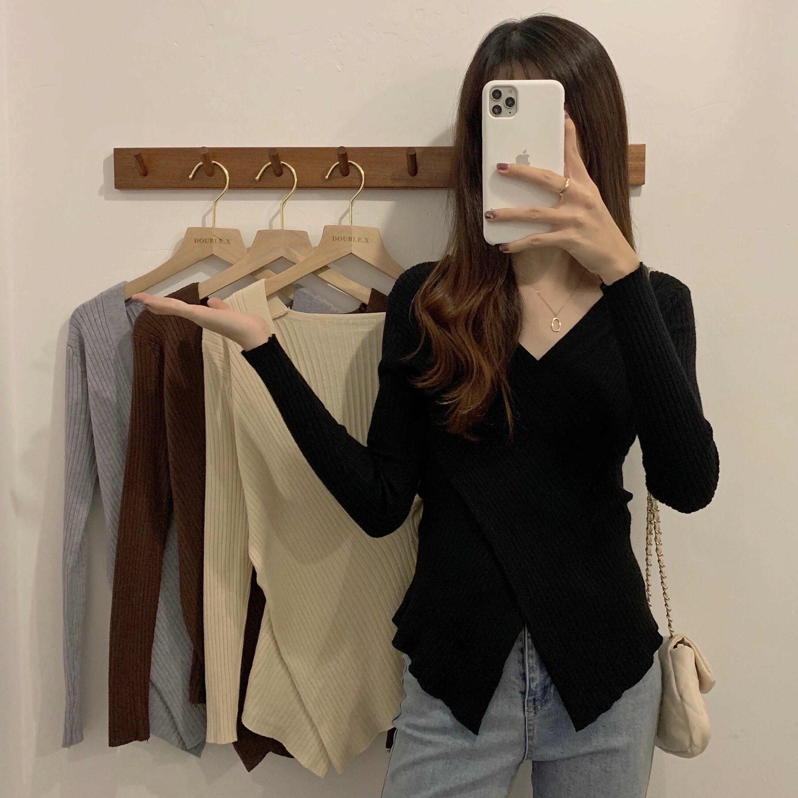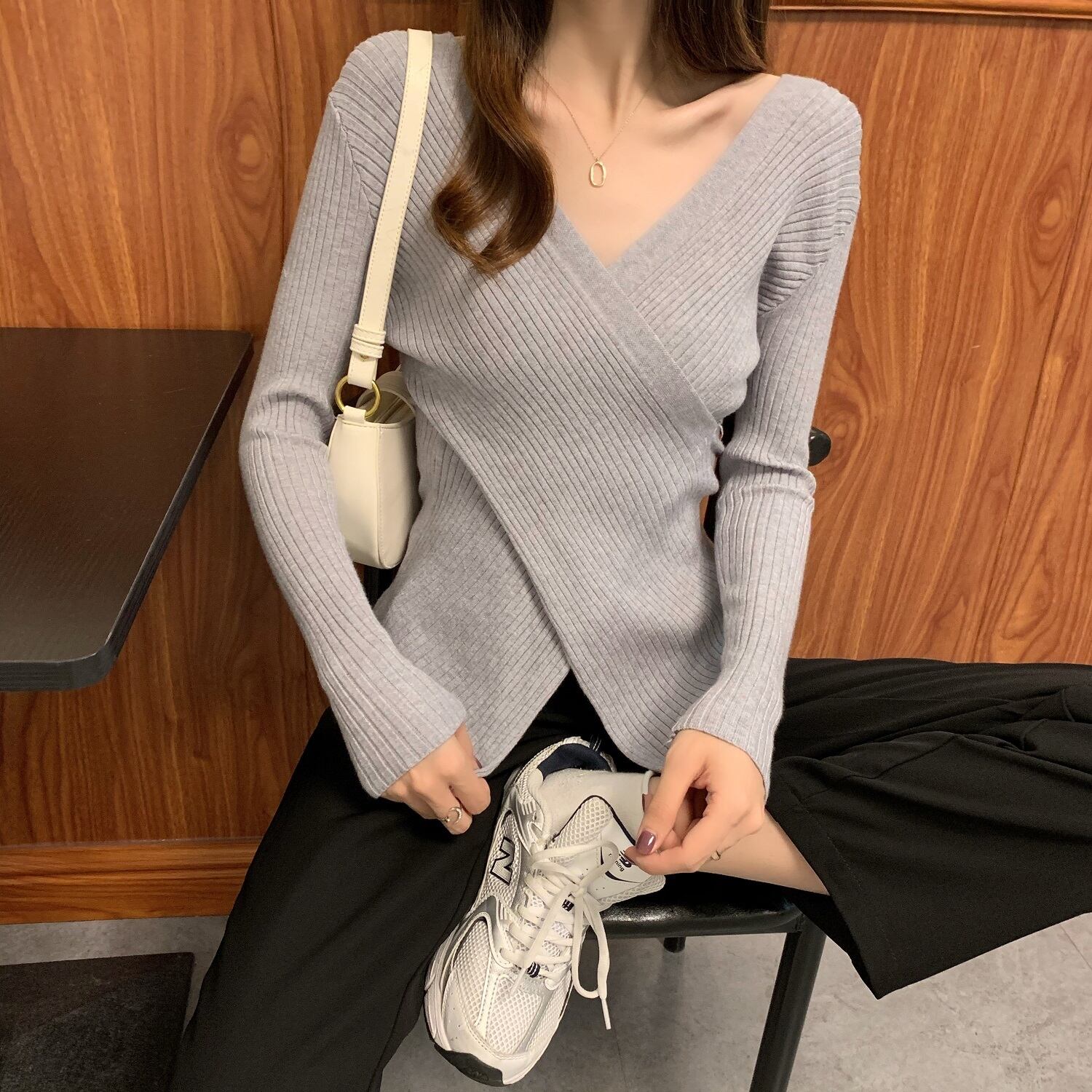 オータムトップス Vネックセーター スリムプルオーバー シャツ ロング 秋物 Xiaofeijia91078611110