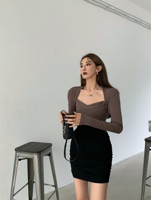 ツーピースVネックトップス ハイウェストスカート Xiaofeijia91284484502