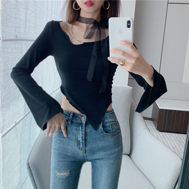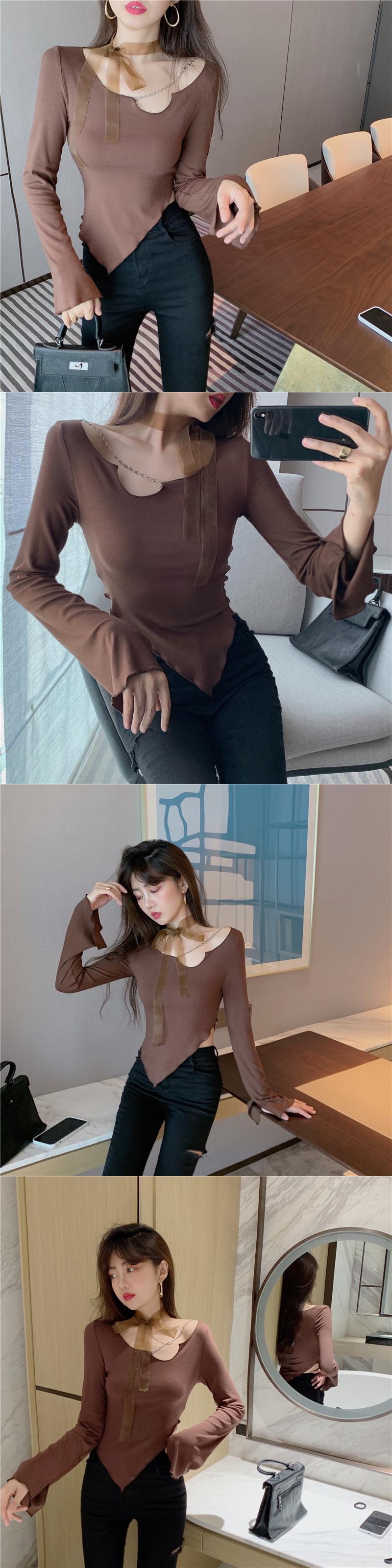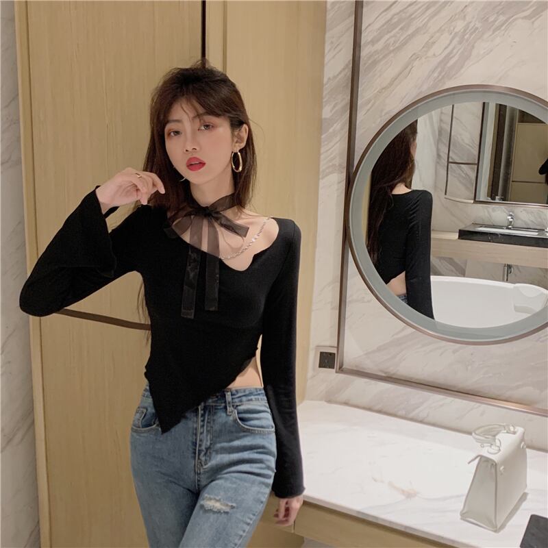 オータムチェーン Tシャツ レディーススリムショートトップス ロング 秋物 Xiaofeijia43321579577