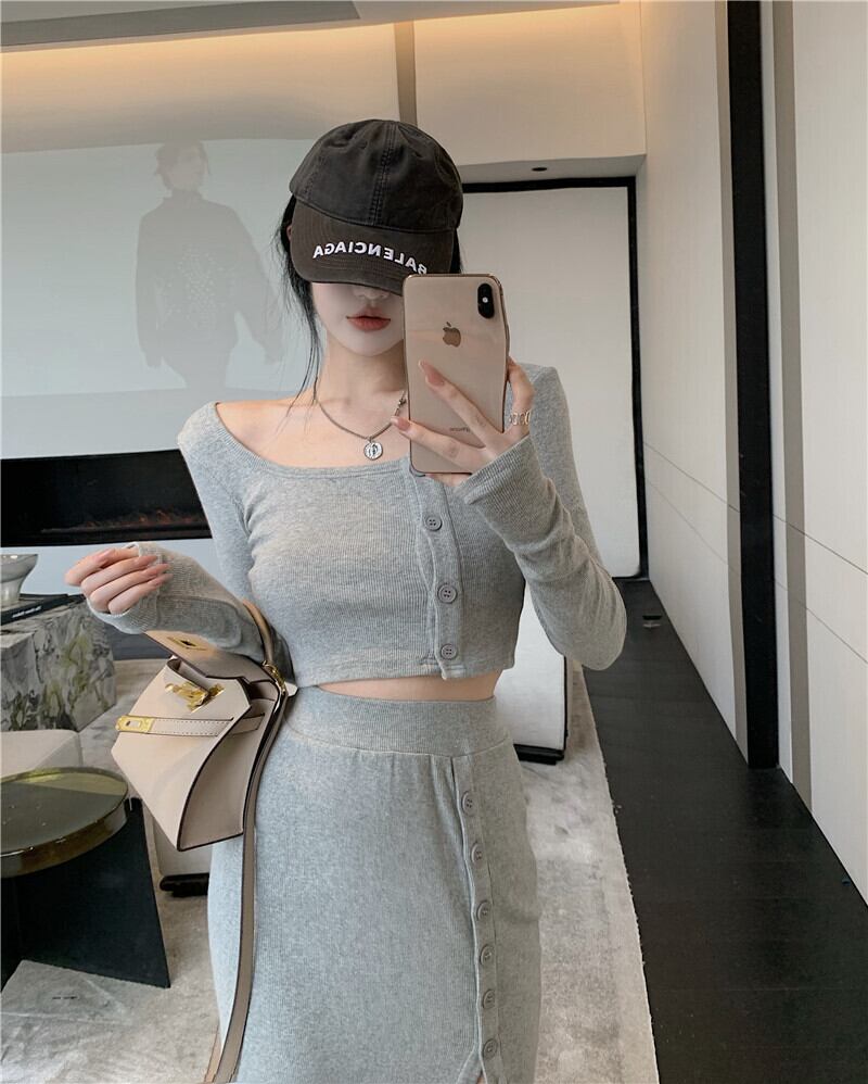 オータムクロップドショート薄手ハイウェストスリット 秋物 スカート Xiaofeijia87187994404