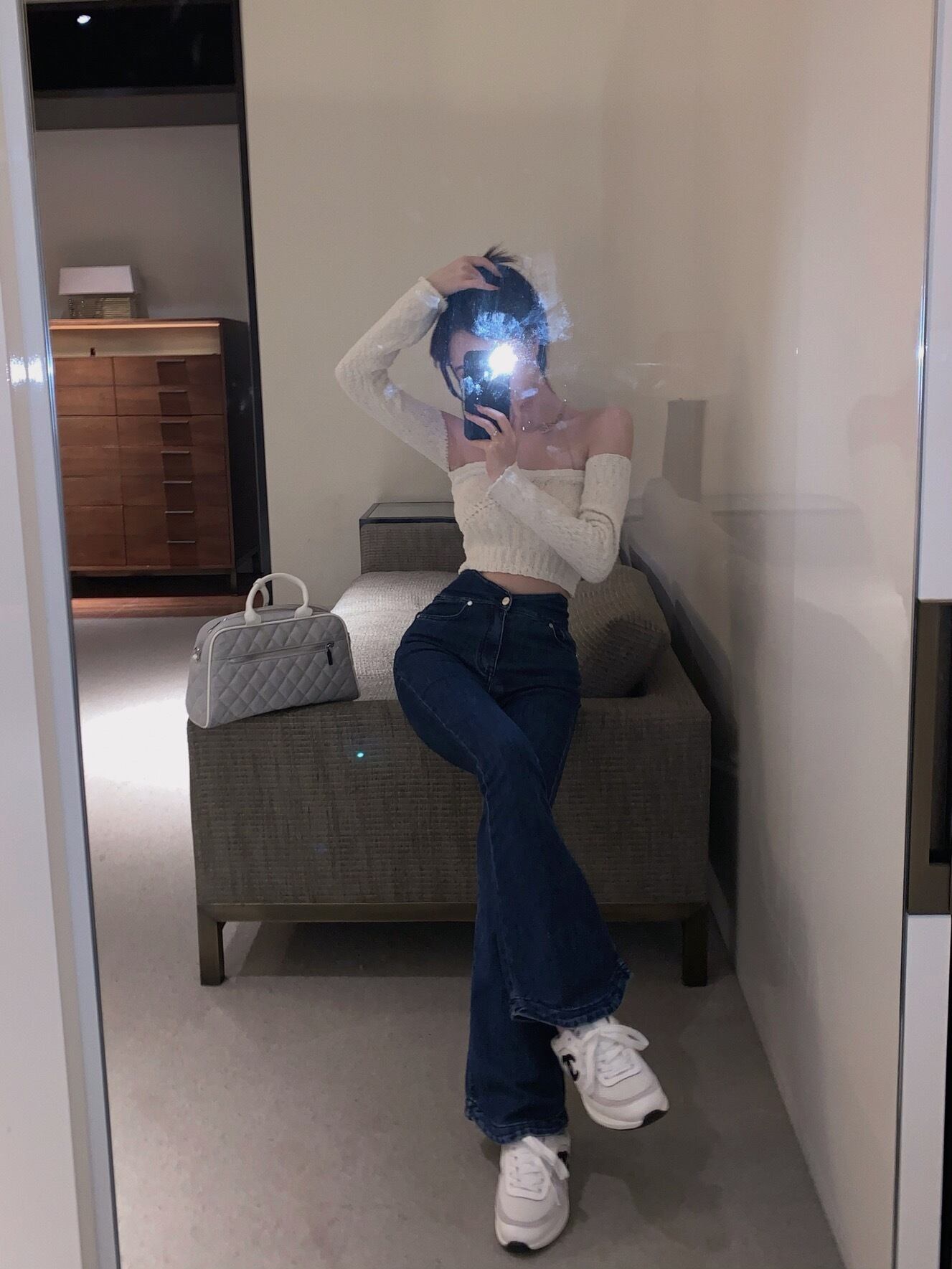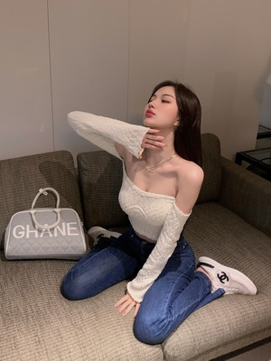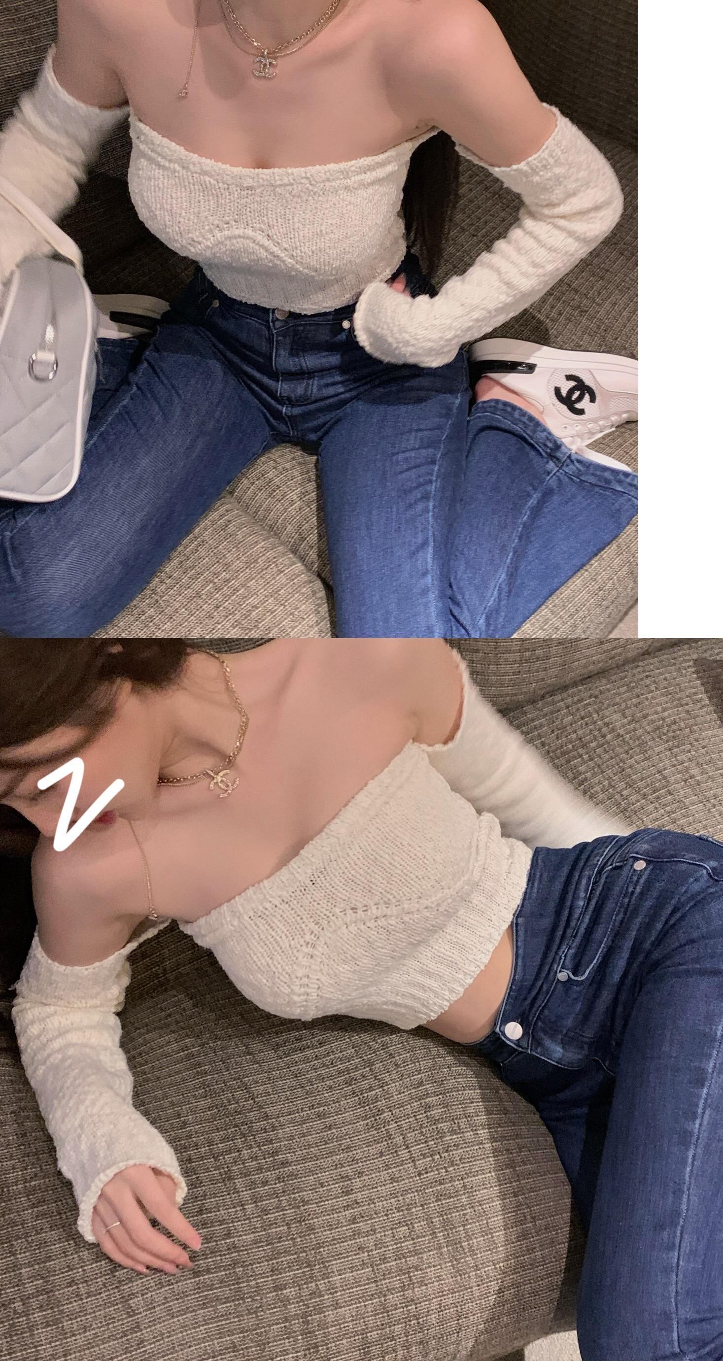 ショートニットトップス ロング オフショルダー Xiaofeijia97807904419