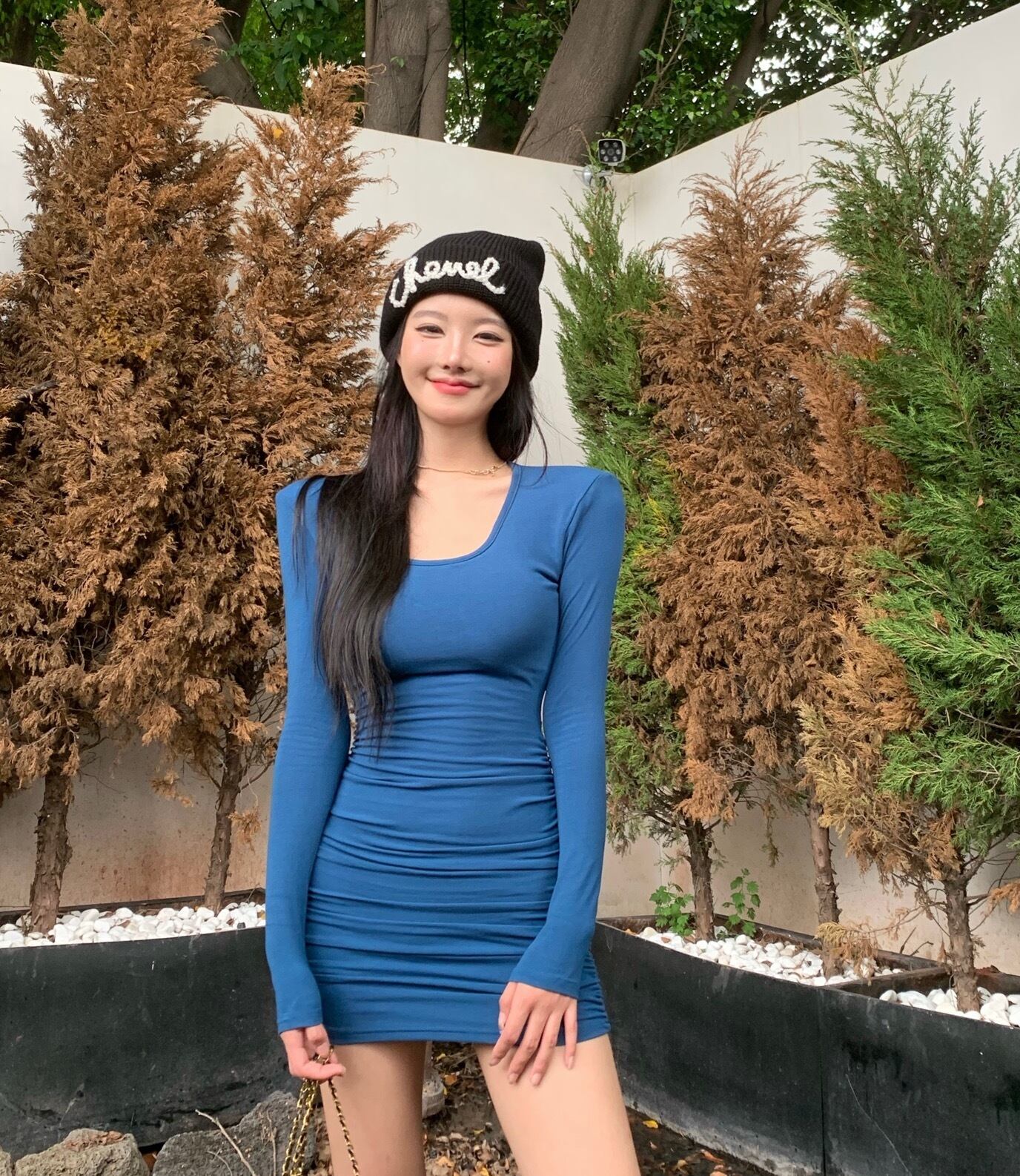 ソリッド カラープリーツバックドレス ロング ソリッドカラー Xiaofeijia54715968937