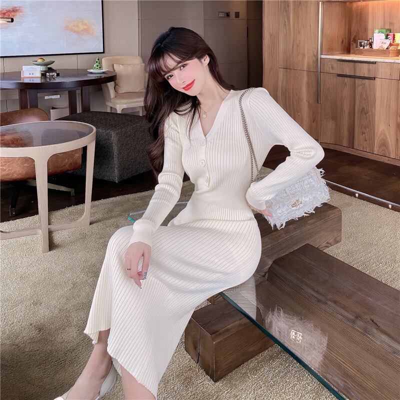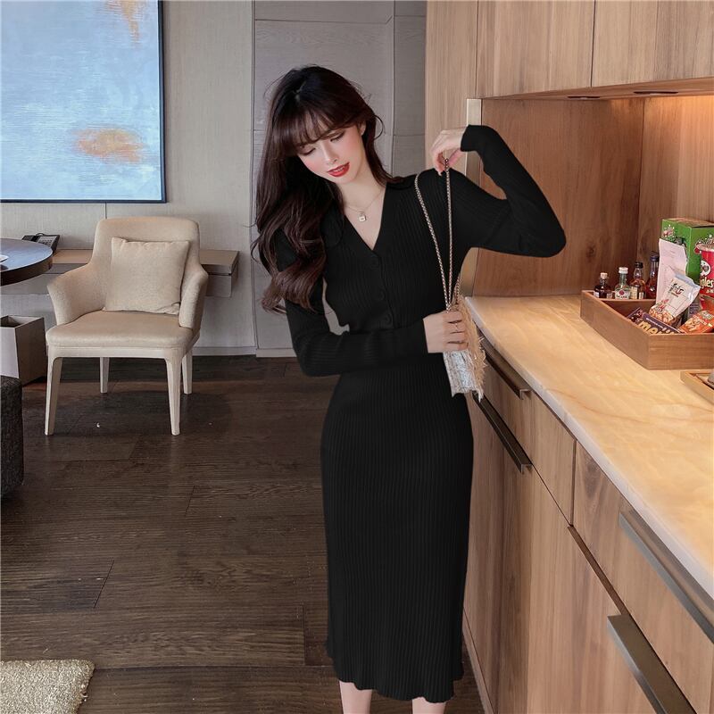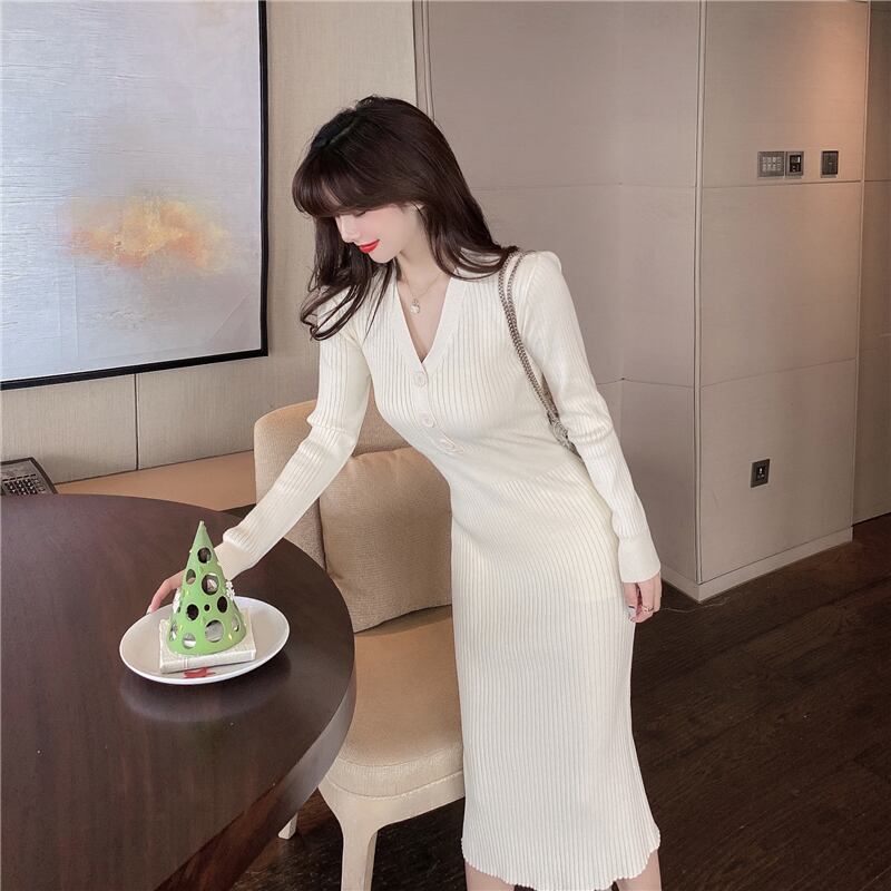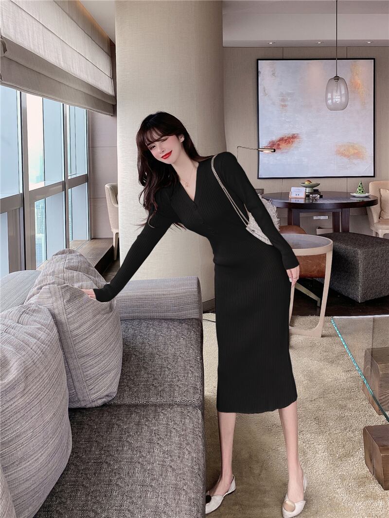 スタイルセーター Vネックニットドレス レディース Xiaofeijia63437901276