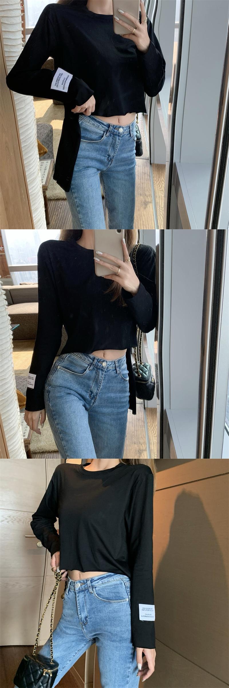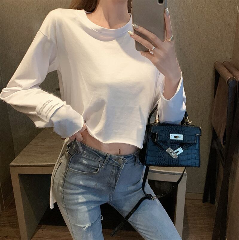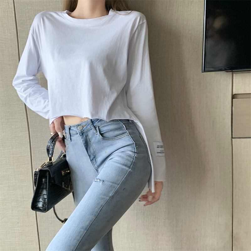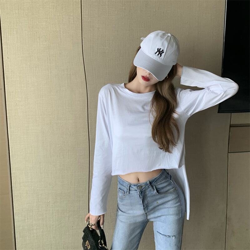 オータムショートトップス ハイウェストウェストTシャツ ロング 秋物 Xiaofeijia32977496750