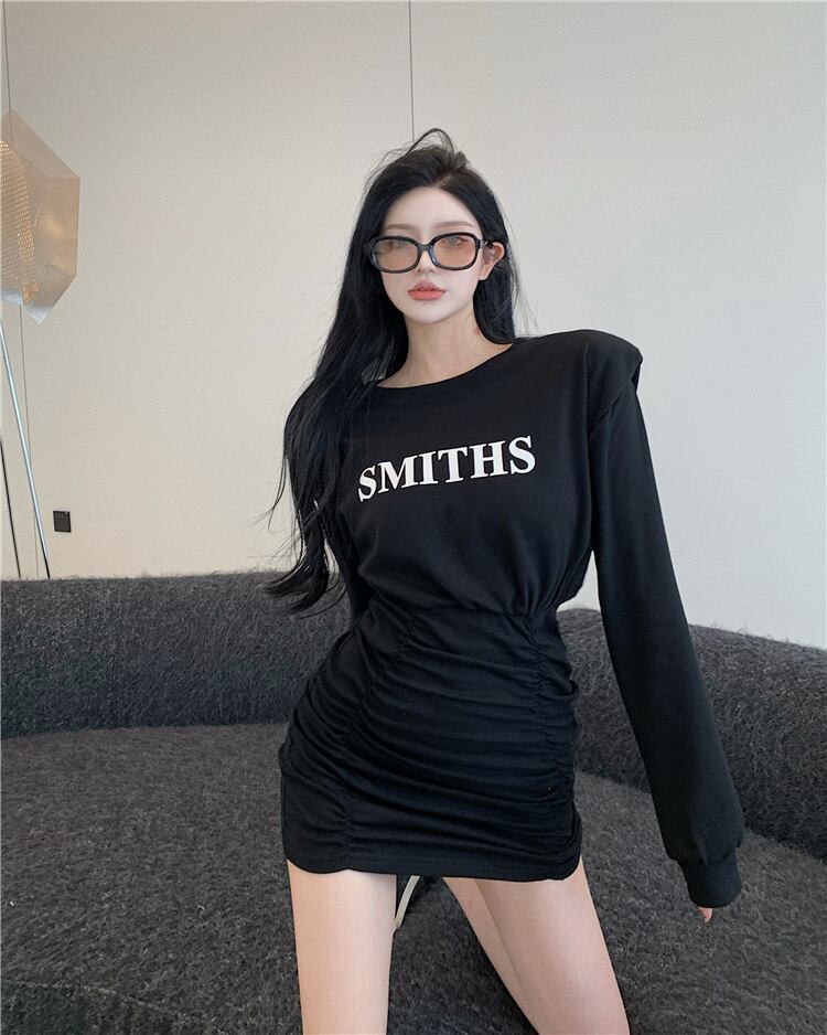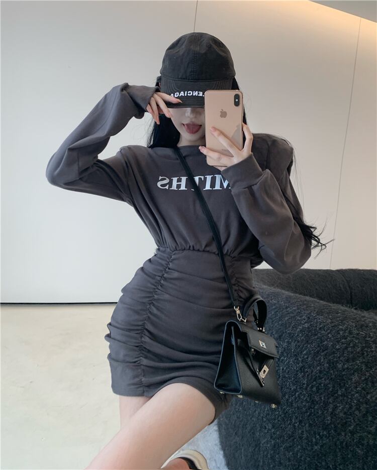 プリントプリーツセーター ドレス ラウンドネックスリムスカート Oネック Xiaofeijia38878658930