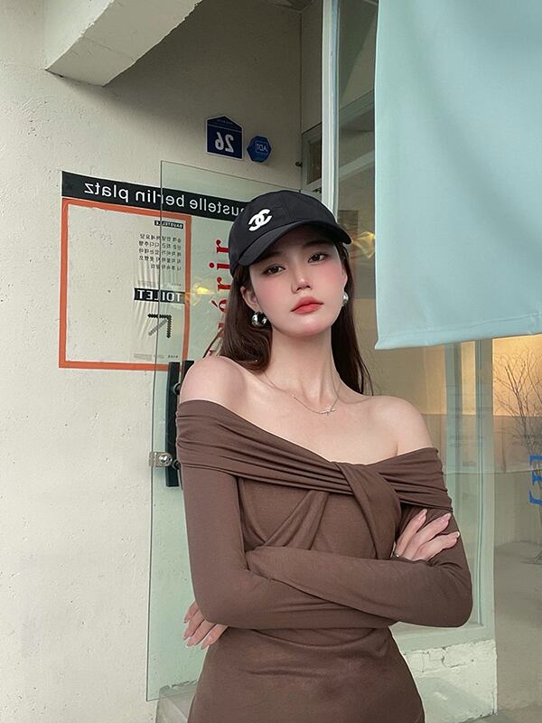 スプリングスリムトップス Tシャツ レディース 春物 オフショルダー Xiaofeijia14462978978