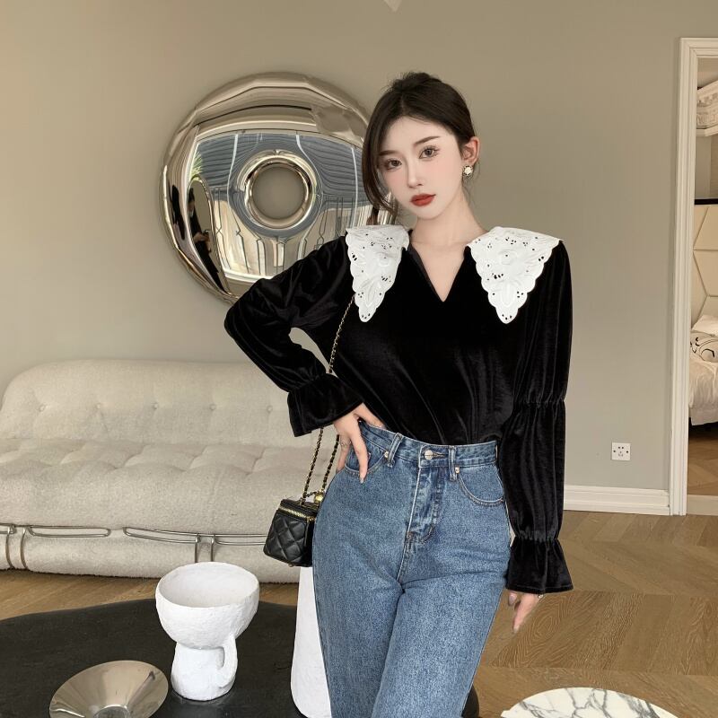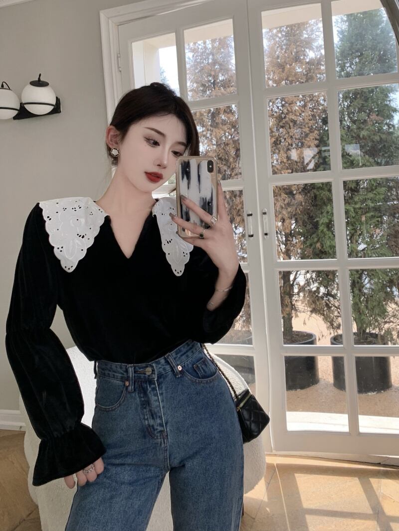 スタイルカラーベルベットシャツ トップス Xiaofeijia89501641723