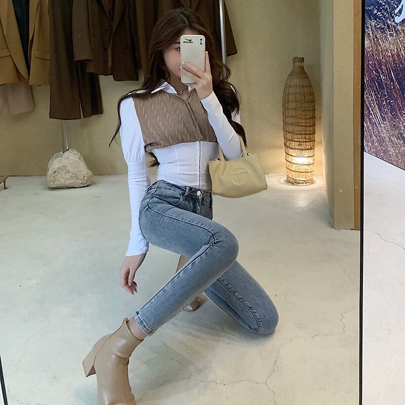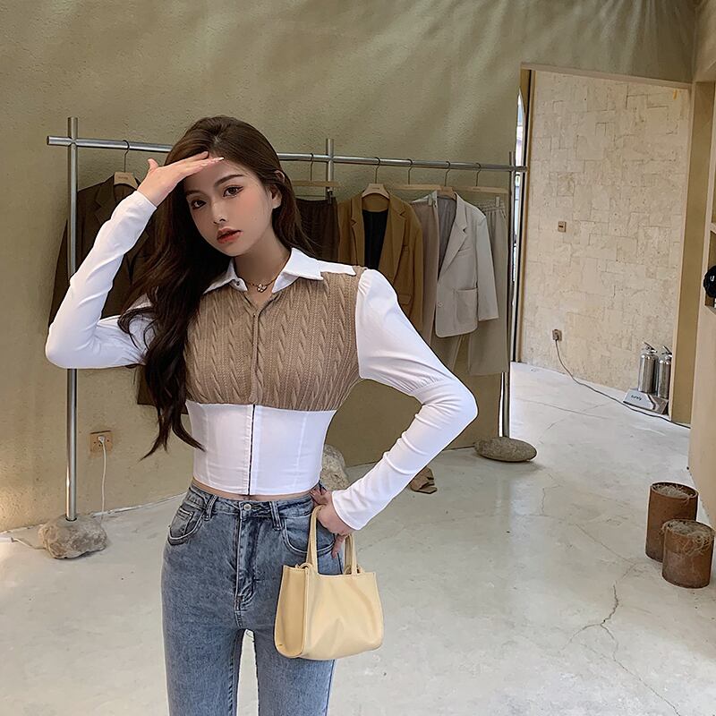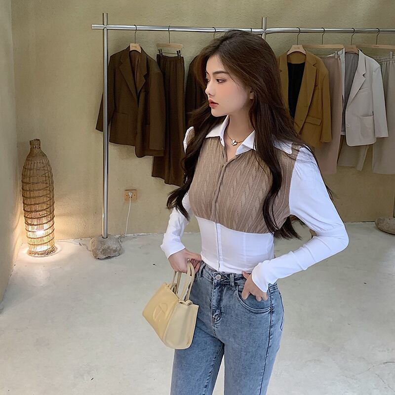 スタンダードスリムシャツ ブラウス レディース ロング レトロ ステッチ Xiaofeijia69539604640