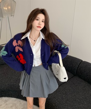 スリムニットカーディガンショートコート トップス レディース ロング Xiaofeijia22629128259