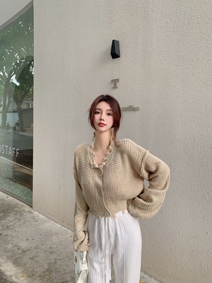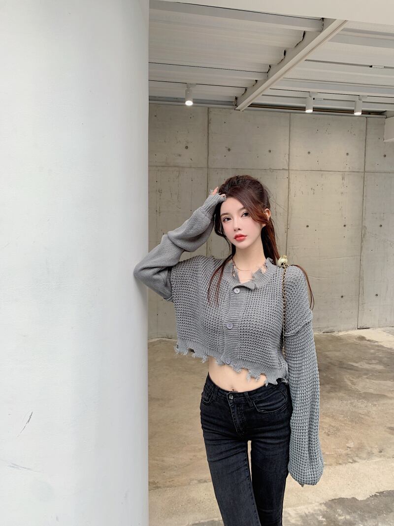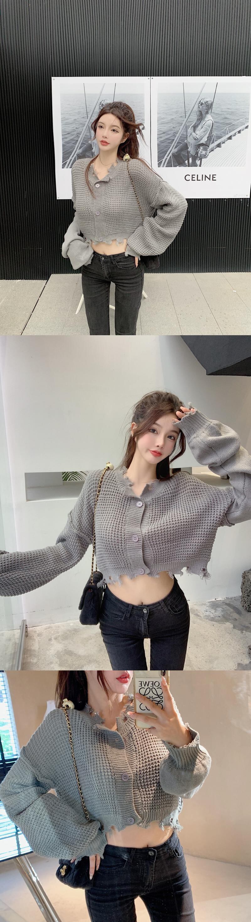 ウィンターVネックニットカーディガンレディースオータムルーズブラウス 秋物 冬物 Xiaofeijia13802895923