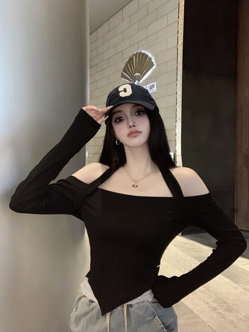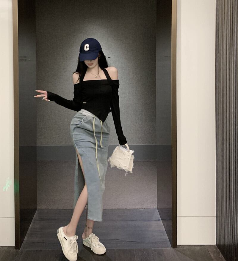 ホルターTシャツ カラー薄手ギャザーハイウェストウェストスカート Xiaofeijia12560599864