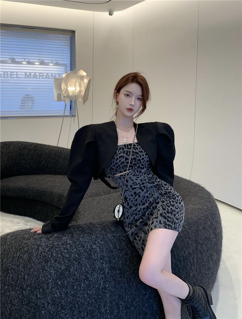 スタンダードレオパードプリント柄ドレス オータムスリムスタイルウェストAラインスカート レトロ 秋物 Xiaofeijia38299538327