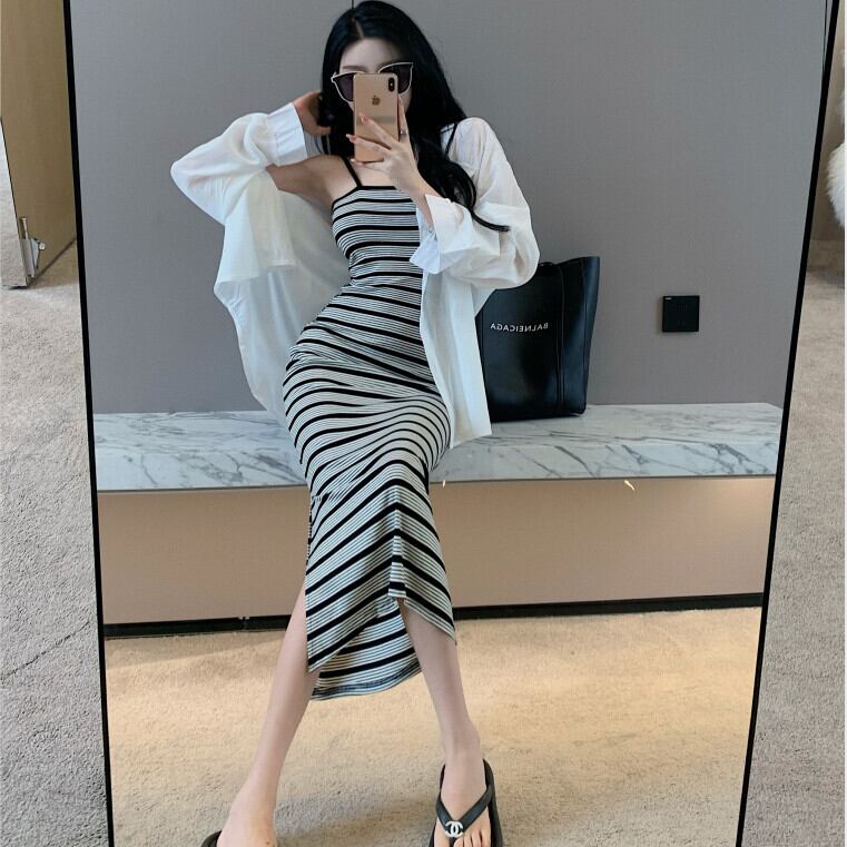 サマールーズシャツ ストライプスカート 夏物 Xiaofeijia3813571882