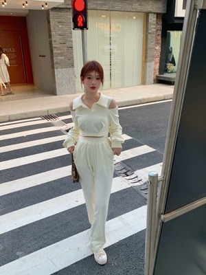 ハイウェストウェストスリムワイドレッグパンツ セーター ワイドパンツ Xiaofeijia69261474175