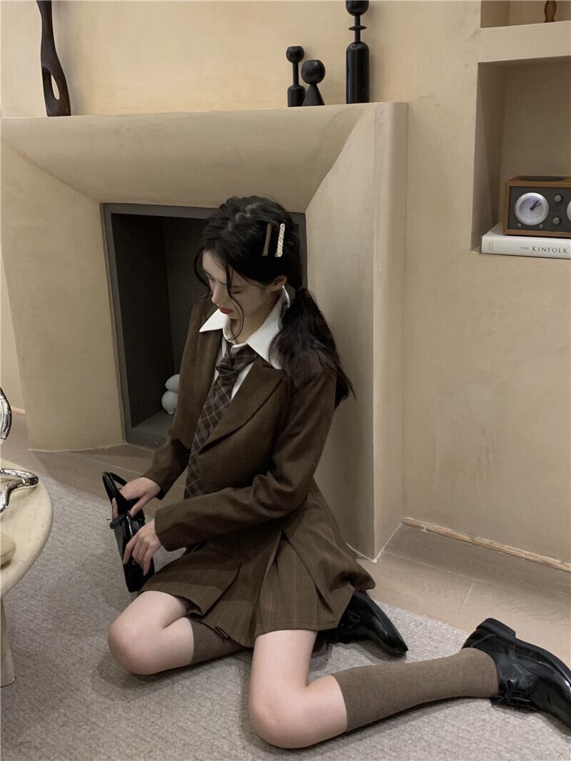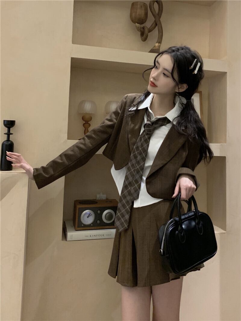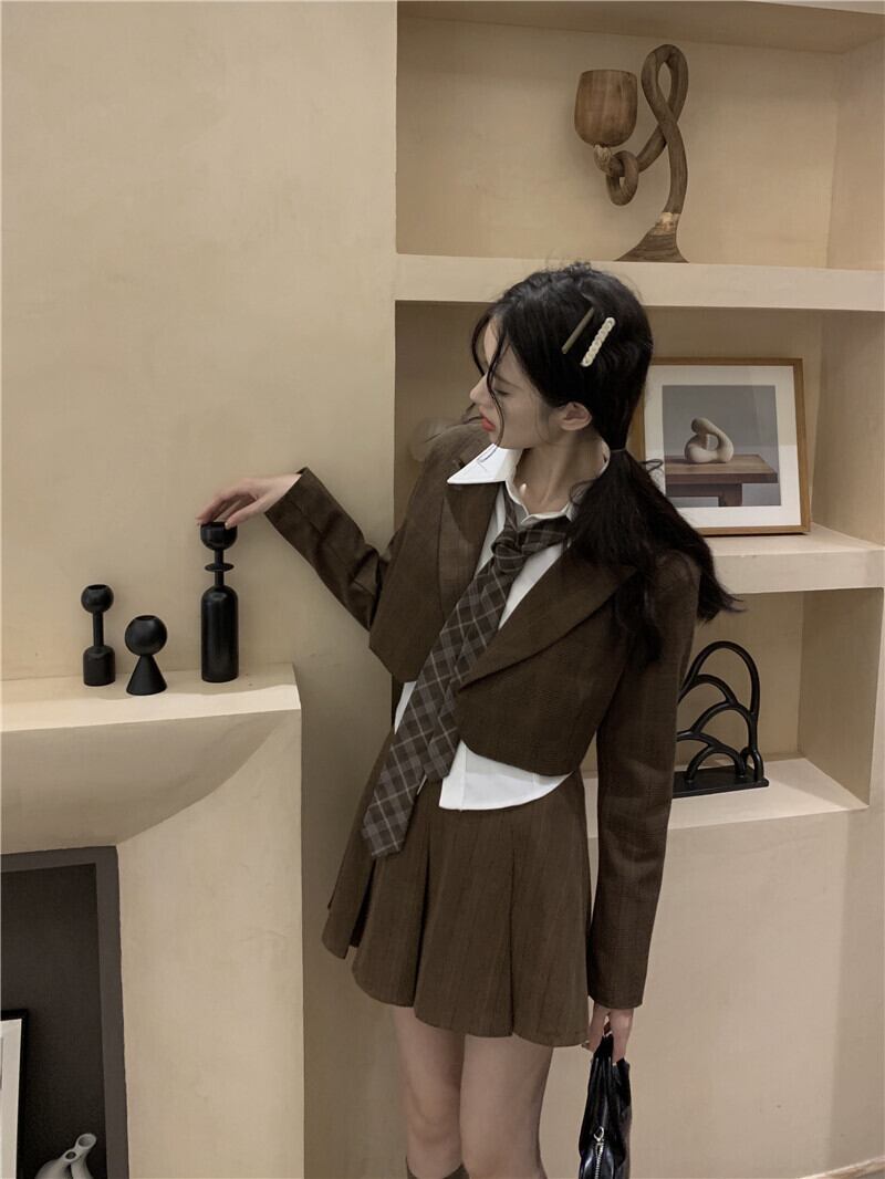 スタンダードショートスタイルコート プリーツスカート オータム レトロ 秋物 Xiaofeijia55963759405