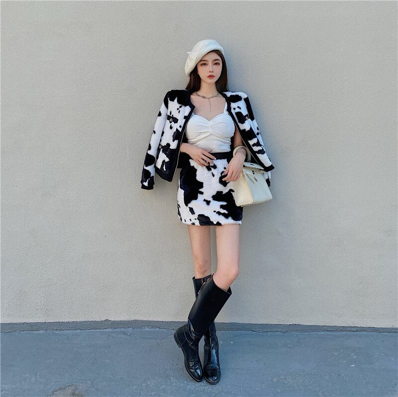 スタイルオータムウィンターブラックホワイトショートファーコート 秋物 冬物 Xiaofeijia84734510562