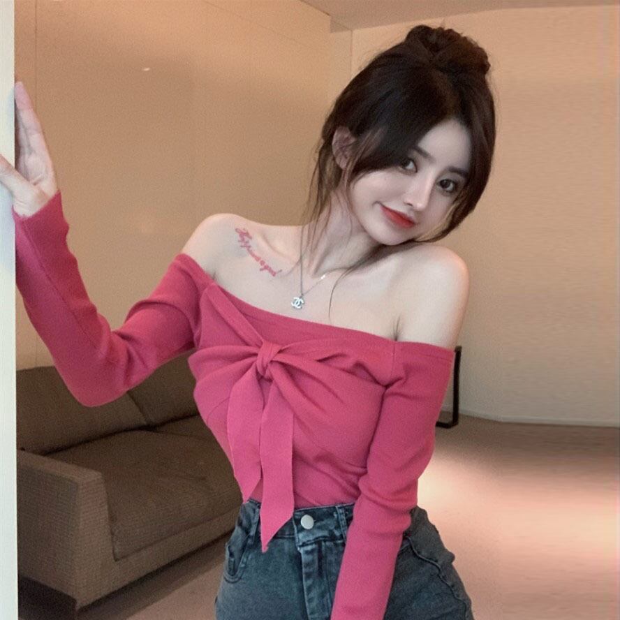 プルオーバー セーター リボンスリムソリッド カラートップス ソリッドカラー Xiaofeijia18342126030