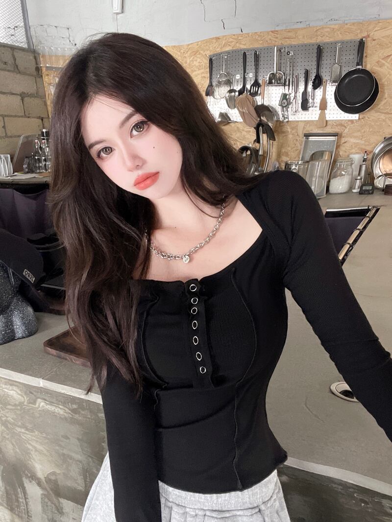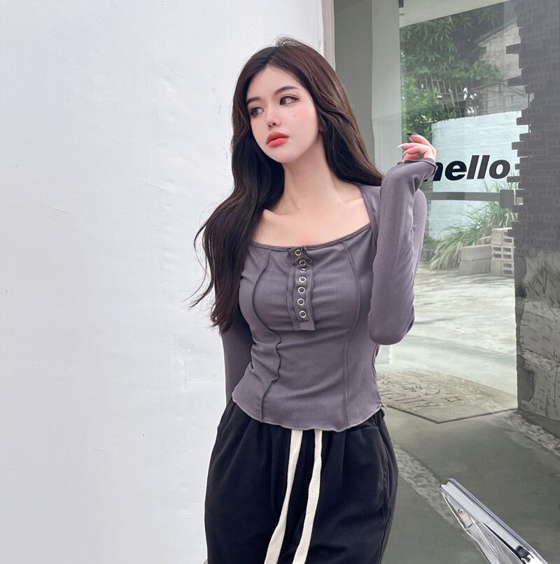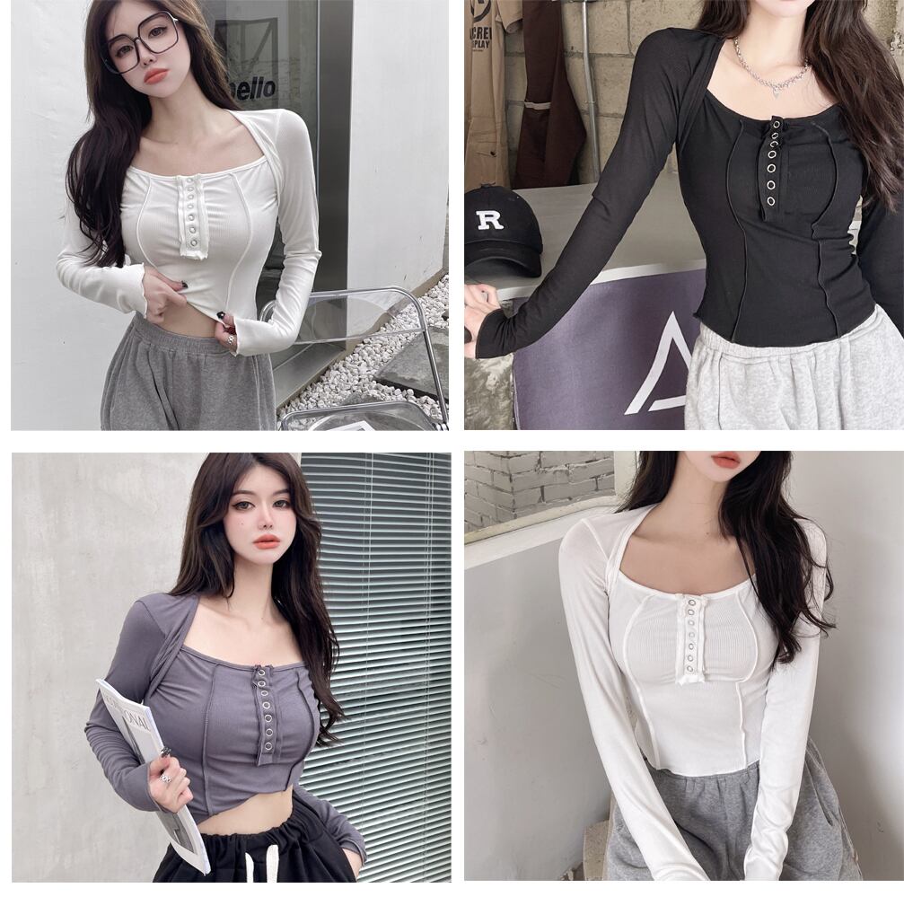 オータムソリッド カラーTシャツ スリムトップス 秋物 ピュア ソリッドカラー Xiaofeijia5759250261