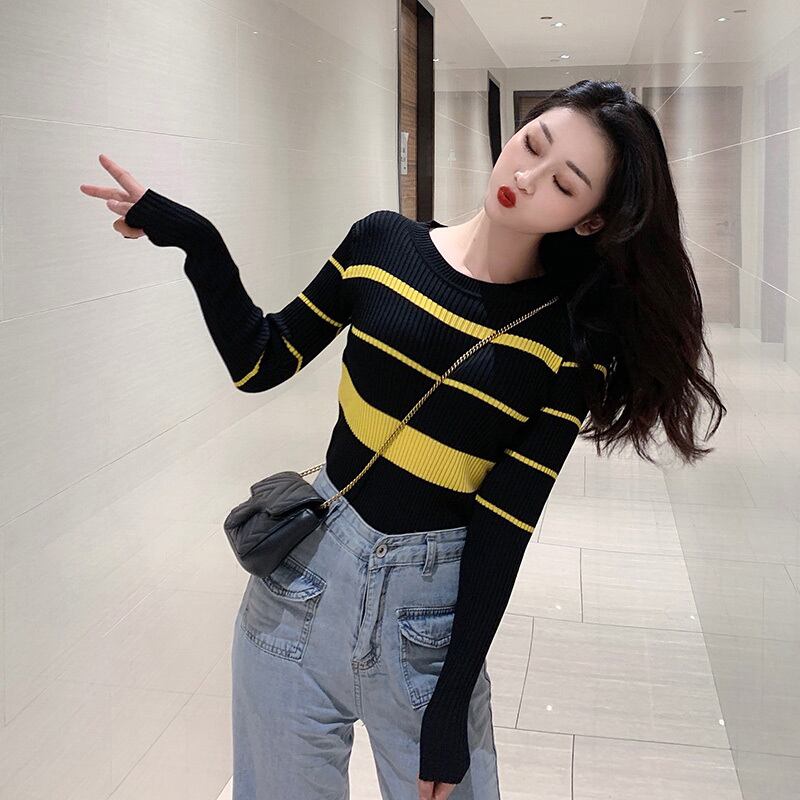 スリムストライプセーター ブラウス ロング Xiaofeijia54237217969