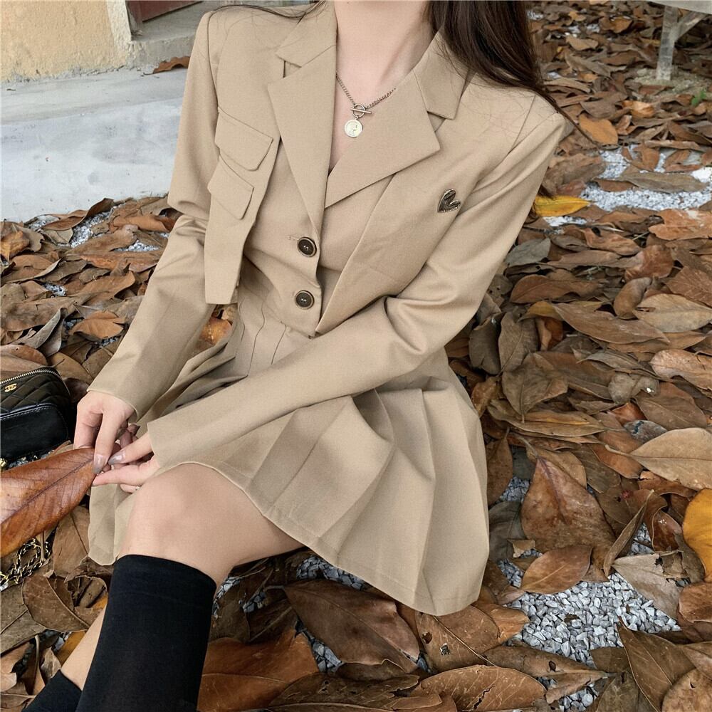 ツーピースウェストスリムプリーツドレス レディース Xiaofeijia61934462318