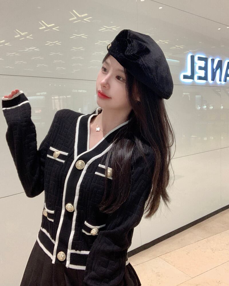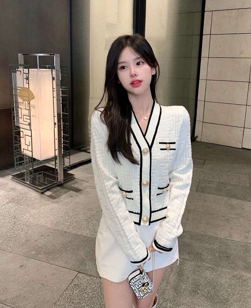 ニットカーディガンレディーススプリングオータムメタルスリムコート スタンダードショートトップス ロング レトロ 春物 秋物 Xiaofeijia18063857692