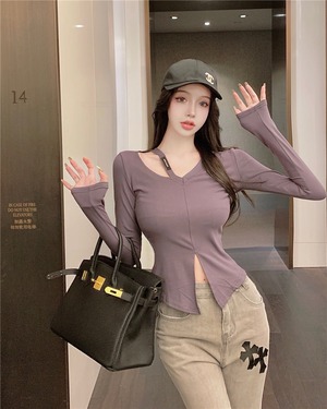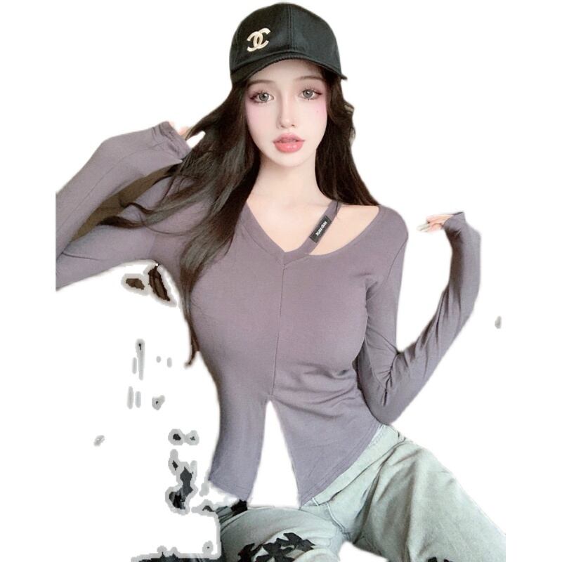 オータムソリッド カラー長袖スリーブトップス ロング 秋物 ソリッドカラー Xiaofeijia11561554459