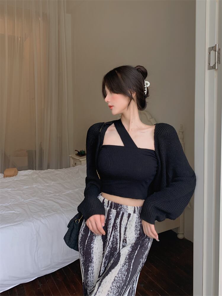 色:グレースリング,カードストラップ,ブラックサスペンダー,アプリコットセーター,黒いセーター