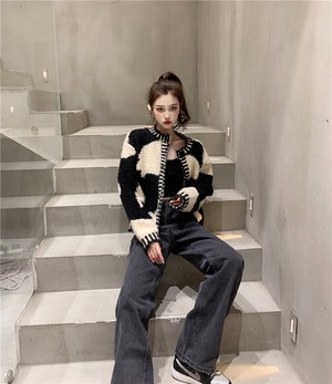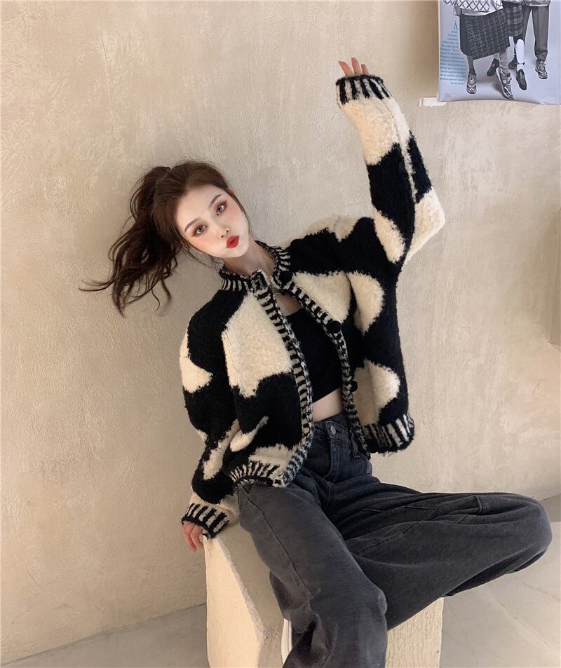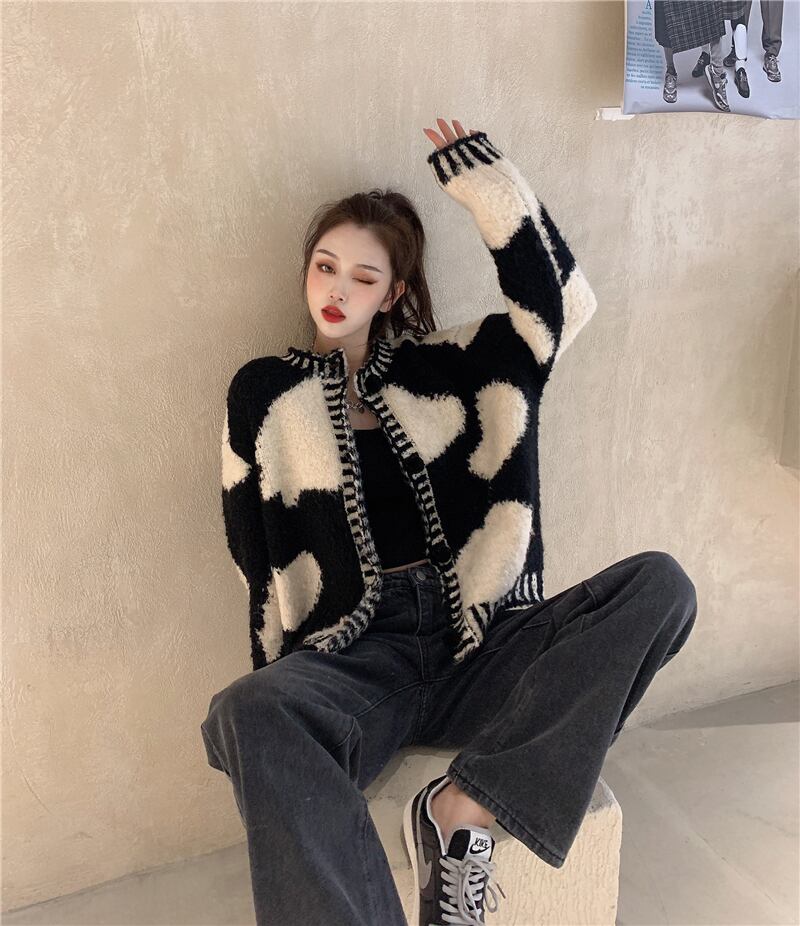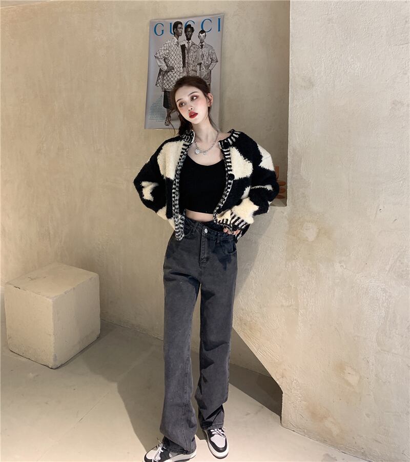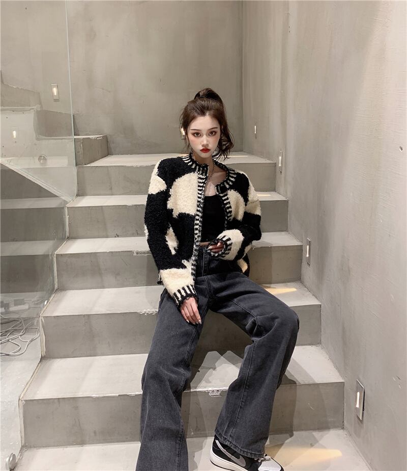 スタイルルーズブラックホワイトオータムウィンターセーター ジャケット ラウンドネックニットトップス レディース ロング 秋物 冬物 Oネック Xiaofeijia66429226983