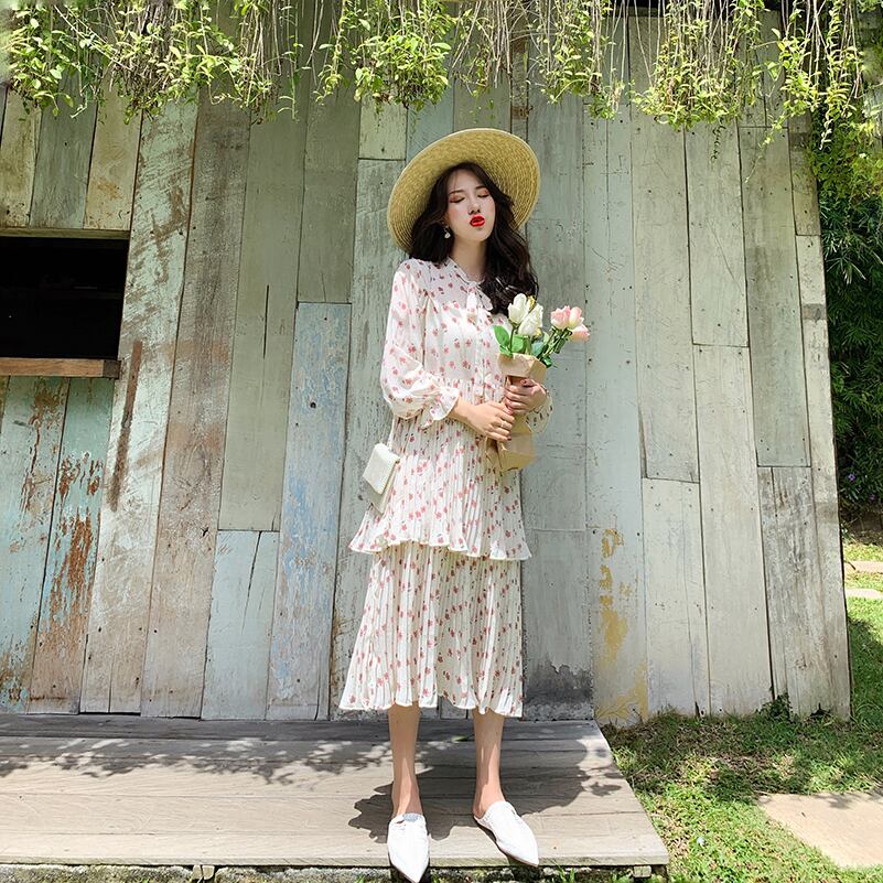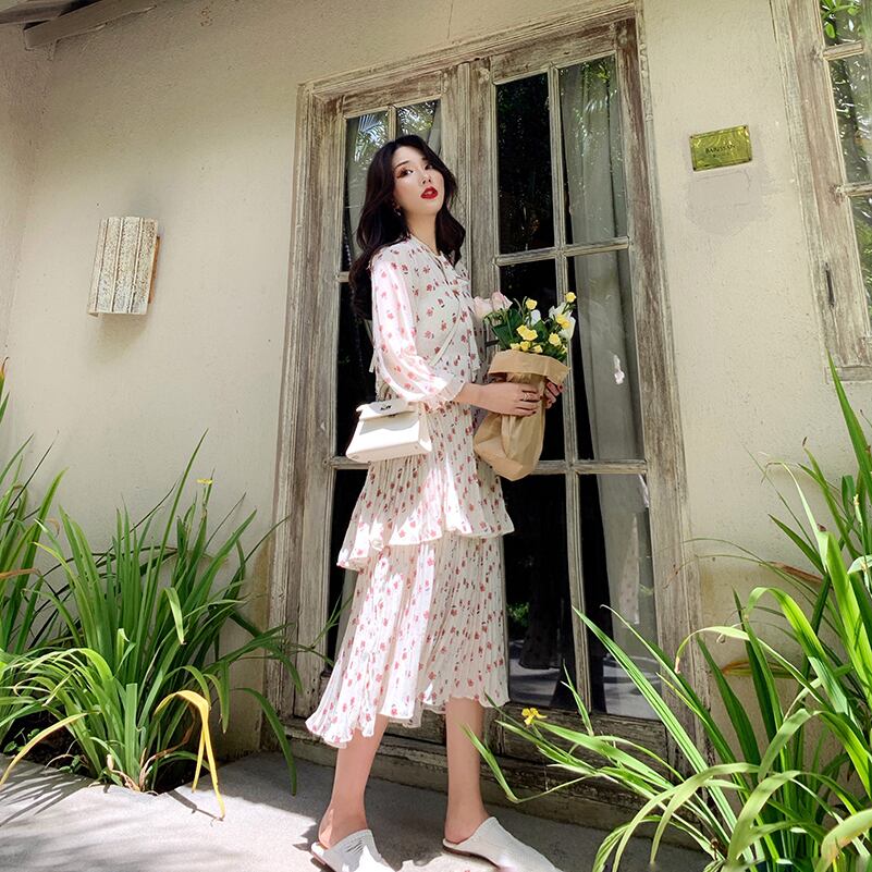 オータムスタンダードフローラルドレス レトロ 秋物 花柄 Xiaofeijia323148948