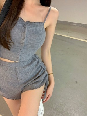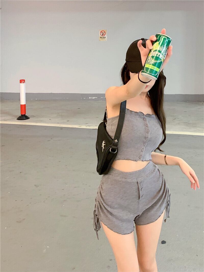グレーサマーショートギャザーショーツ 夏物 ブルマー ピュア Xiaofeijia10967099473
