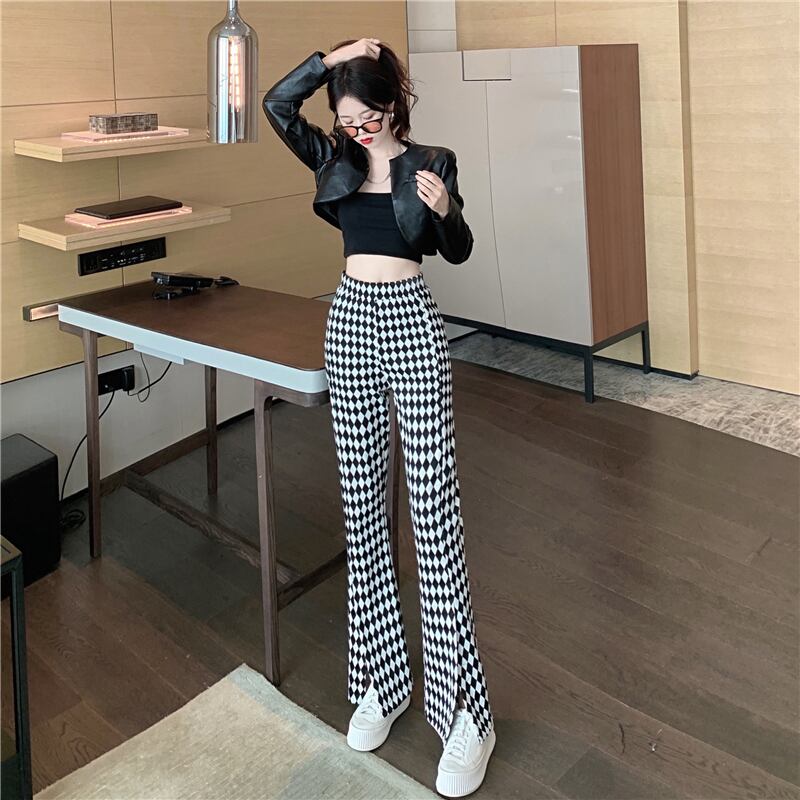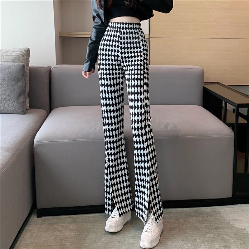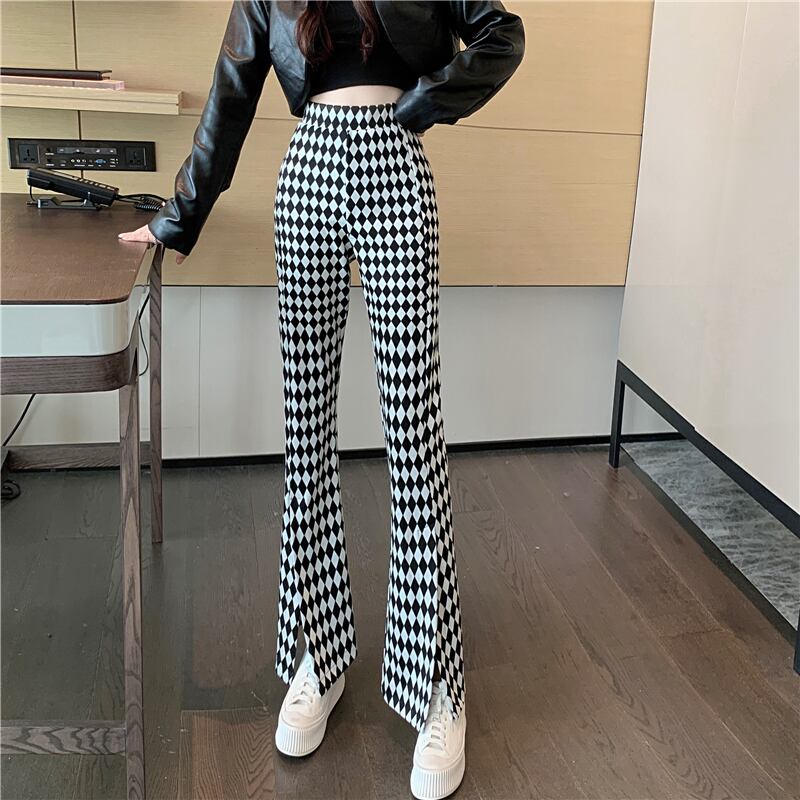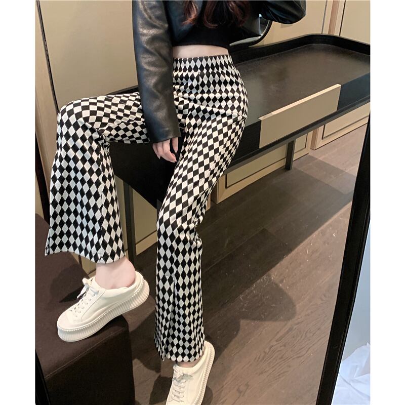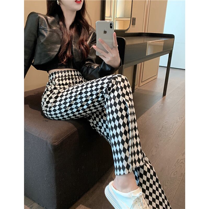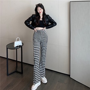パンツ スプリングオータム格子柄ハイウェストウェストスリム レッド 春物 秋物 Xiaofeijia88740474903