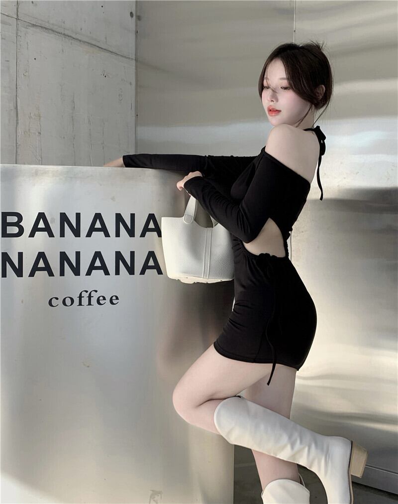 ブラックオータム ロング レース 秋物 レースアップ Xiaofeijia31810385187