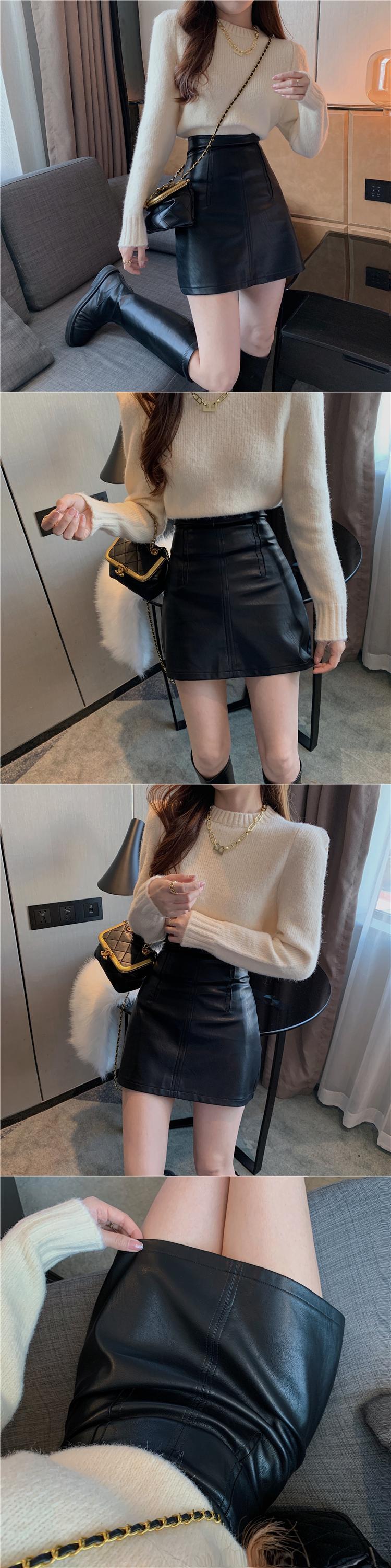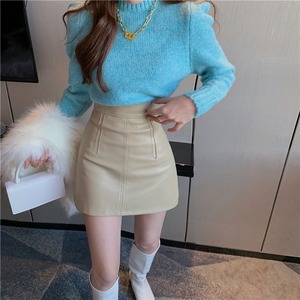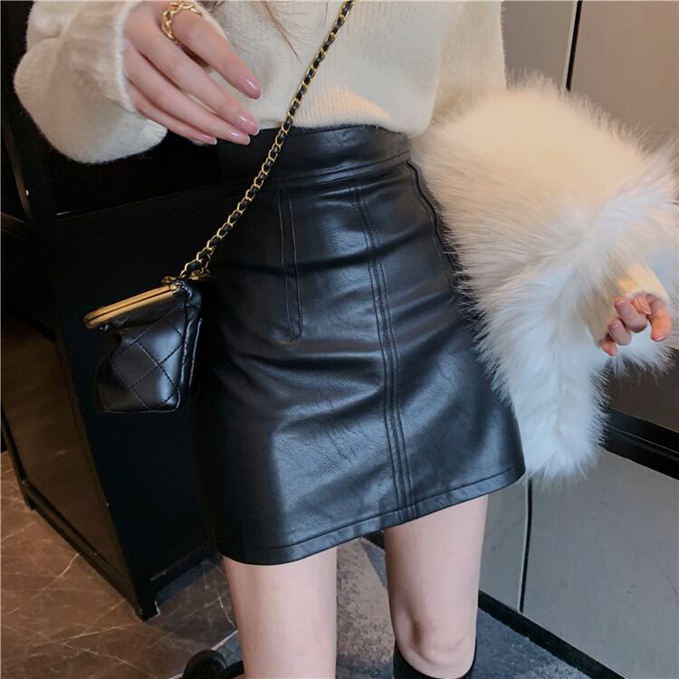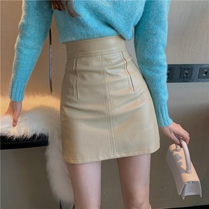 オータムカーキハイウェストウェストスカート レザーショートAライン 秋物 Xiaofeijia49153409403