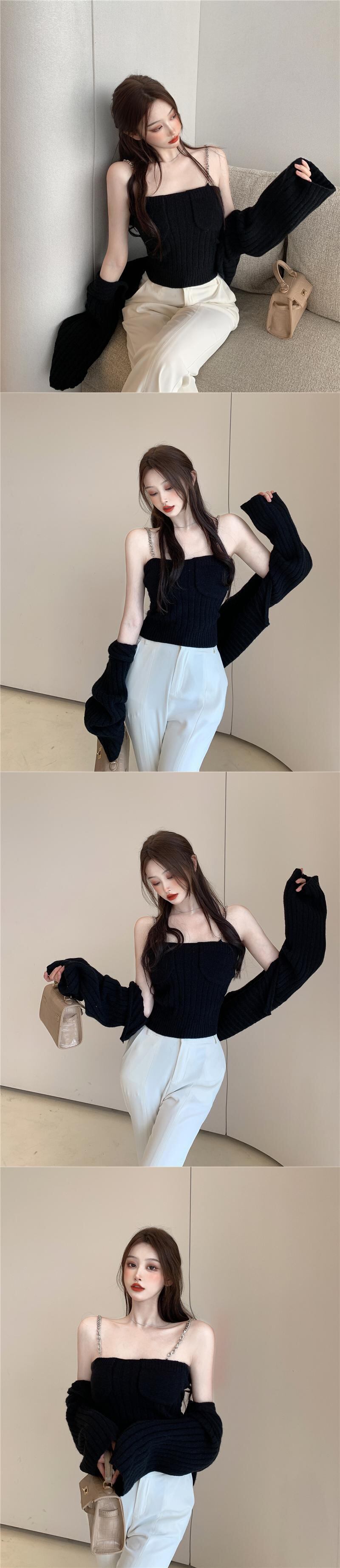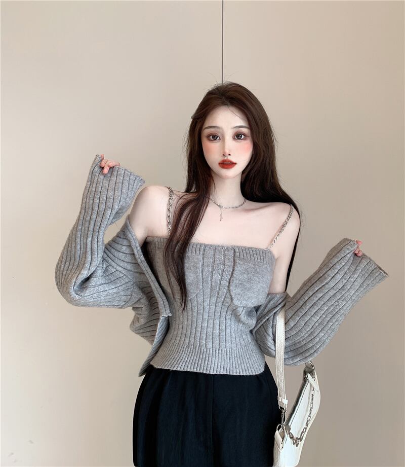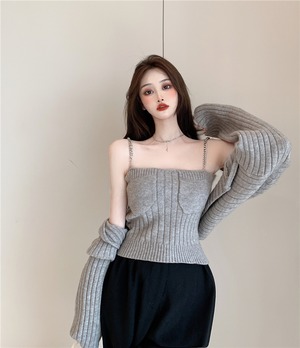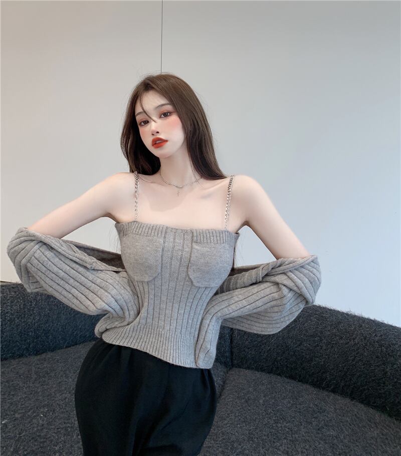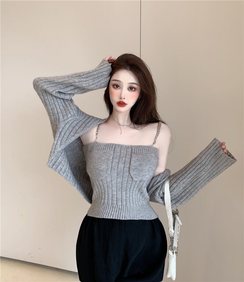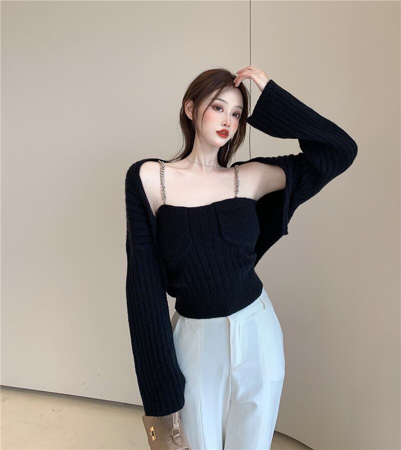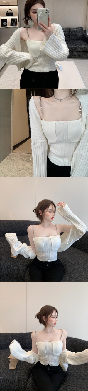 ニットカーディガンオータムチェーン セーター コート クロップドトップス ロング 秋物 Xiaofeijia9388812563