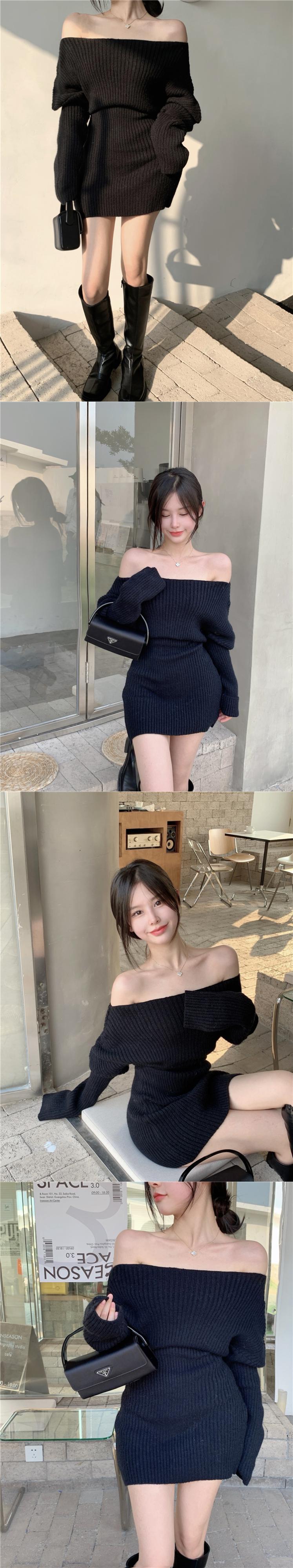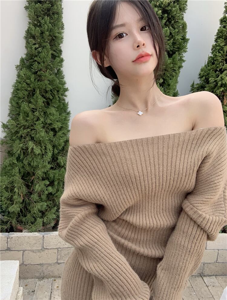 スリムドレス カーキウェストニットショートスカート オータムウィンターコート 秋物 冬物 ショルダーバッグ オフショルダー Xiaofeijia45453860624