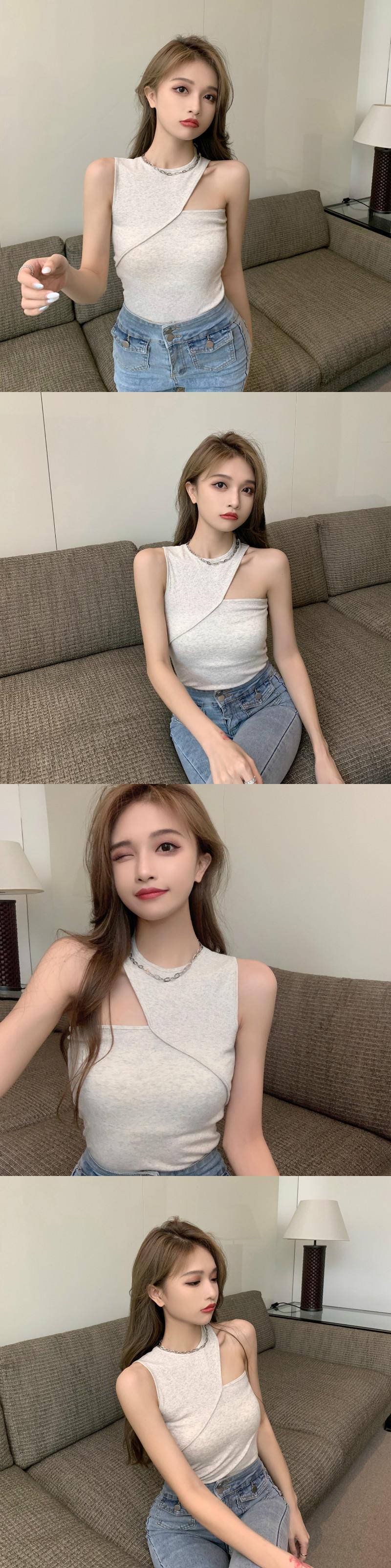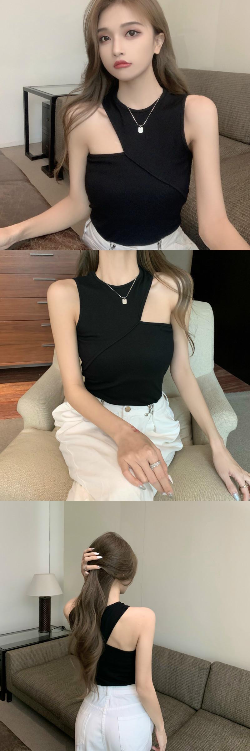ラウンドネックノースリーブサマードレス トップス 夏物 Oネック Xiaofeijia10918178257