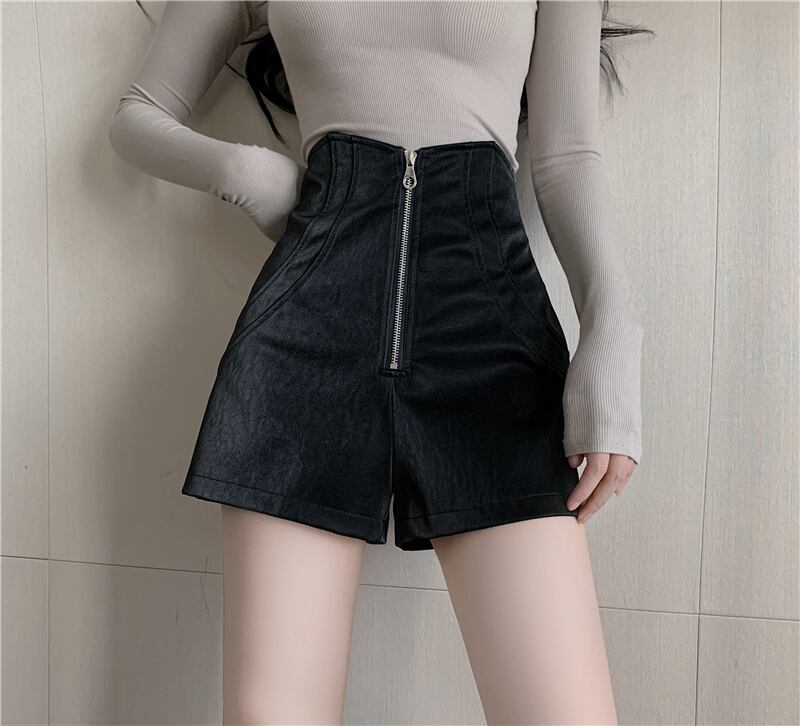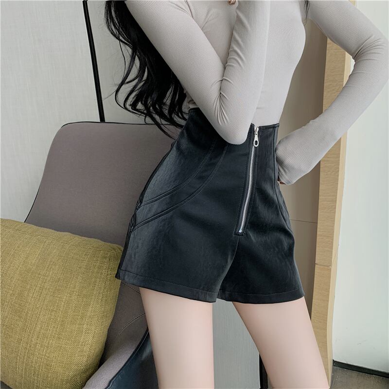 ジッパーハイウェストウェストブラックパンツ オータムウィンターベルベットレザーショーツ 薄手ブーツ 靴 シューズ 秋物 冬物 ブルマー Xiaofeijia18028940641