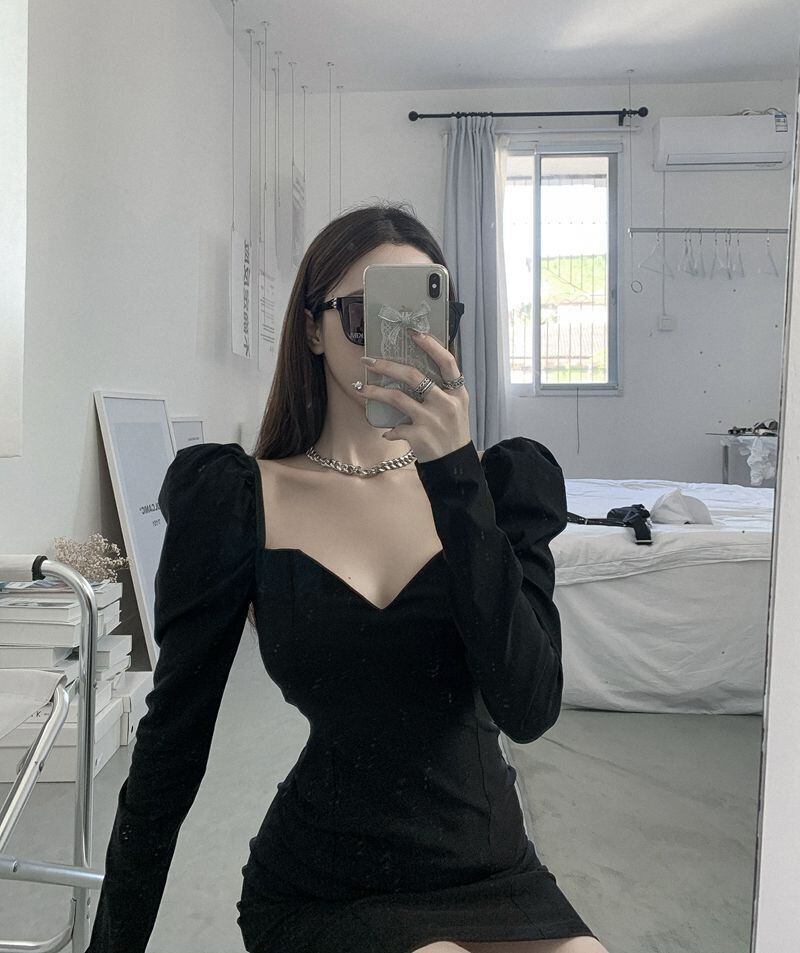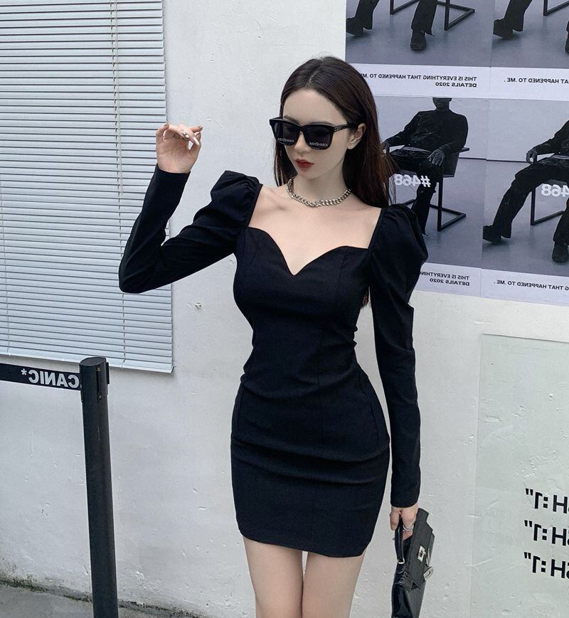 ドレス オータムスタイルショートスカート ブラック ロング エレガント 秋物 スクウェア Xiaofeijia55095970175