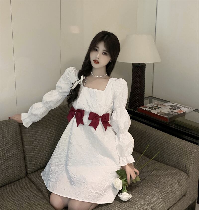 スリーブスカート オータムドレス ウェストリボン ロング 秋物 Xiaofeijia85073457569