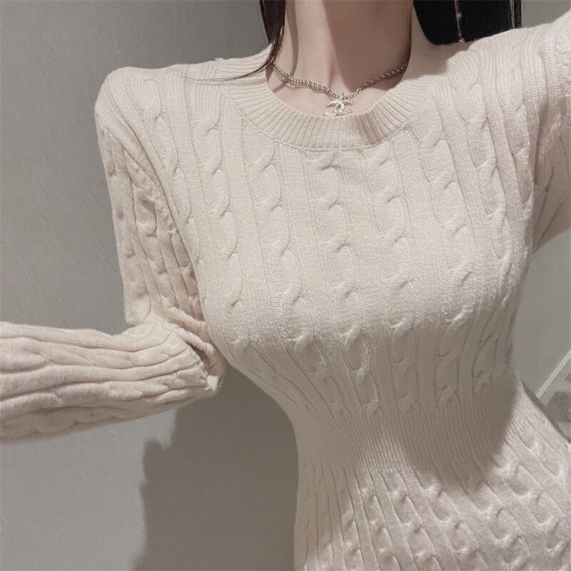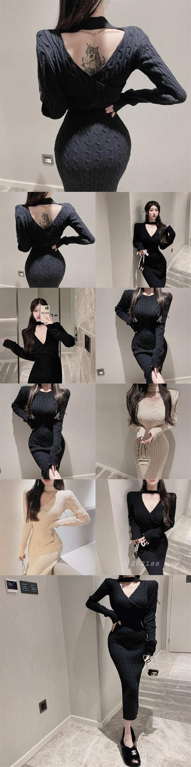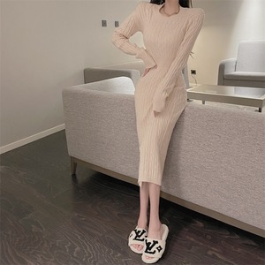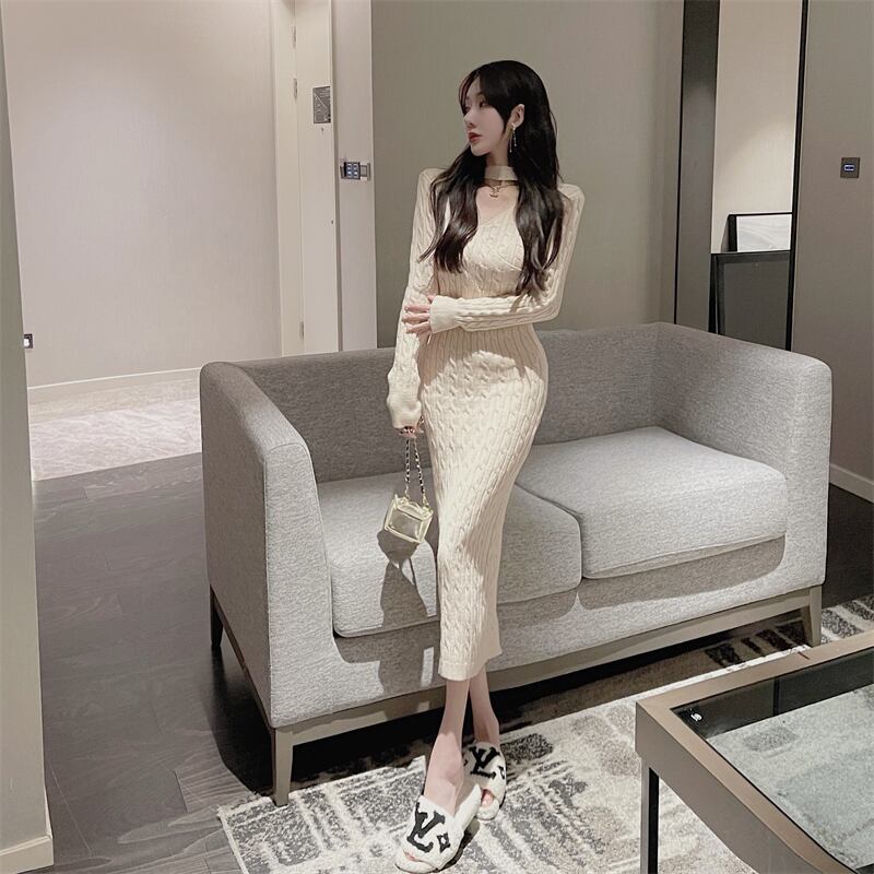 Vネックパターンセーター スカート ロングスリットドレス オータムウィンター 秋物 冬物 Xiaofeijia85501915281