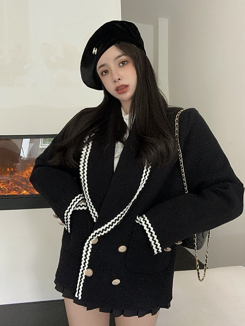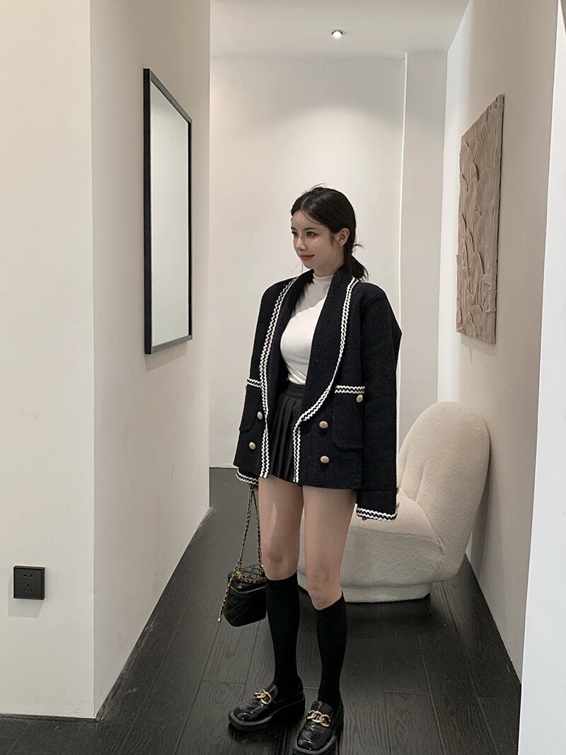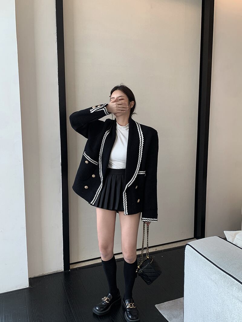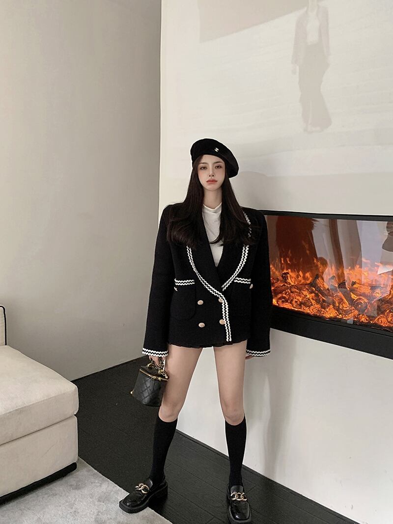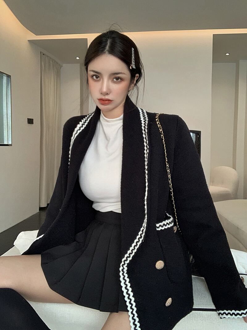 オータムウィンターニットカーディガンブラックジャケット 秋物 冬物 Xiaofeijia70160657756